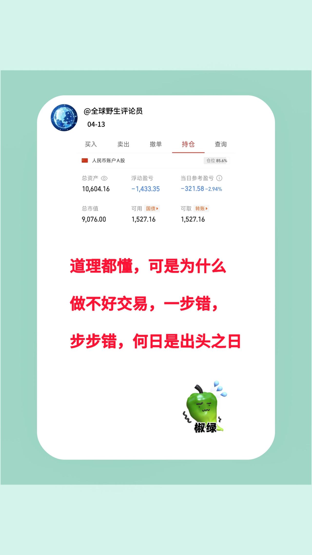 勇闯大A折戟沉沙版,几天时间将4月收益全亏没了,和大曾子老师有的一拼
