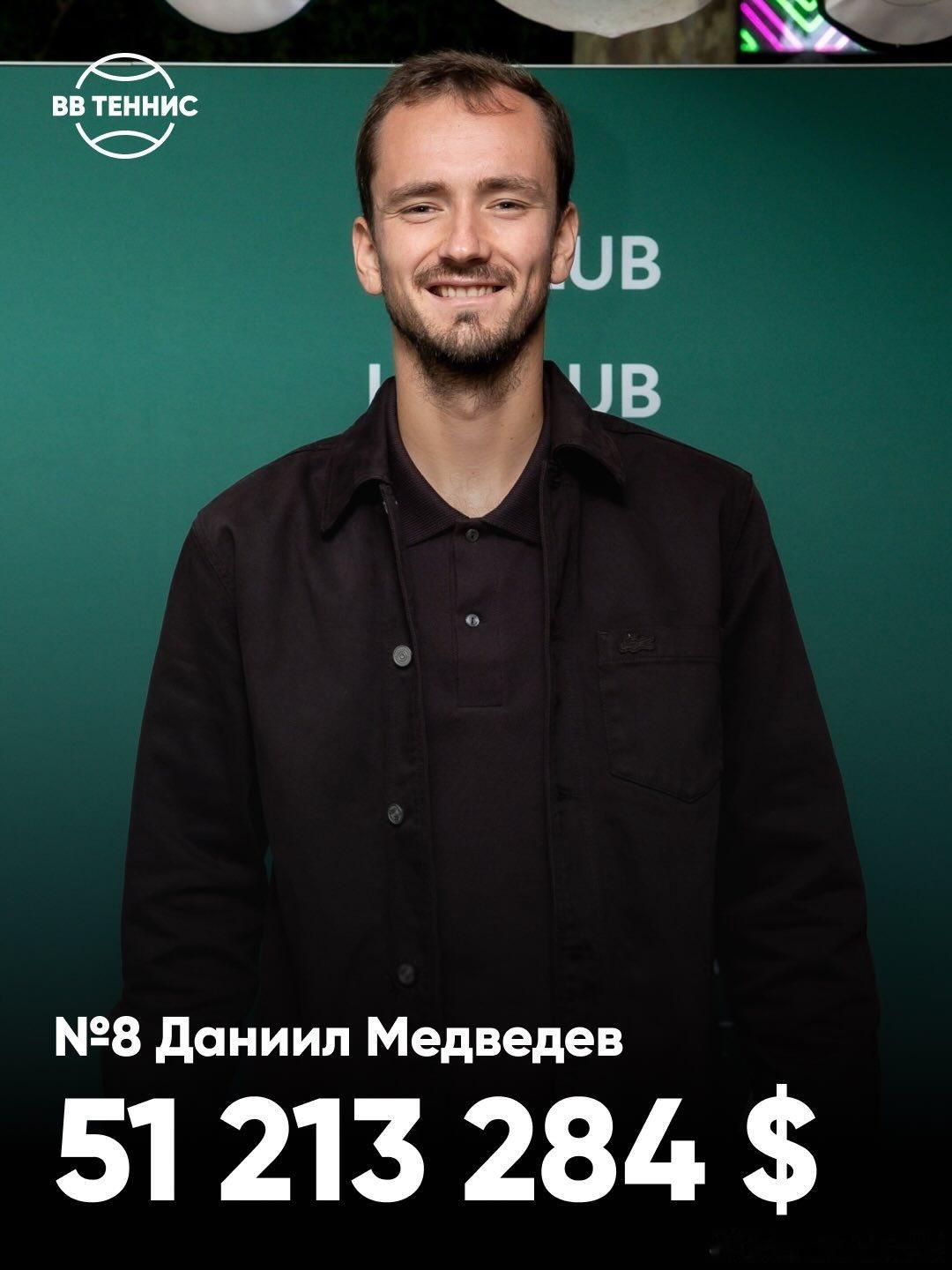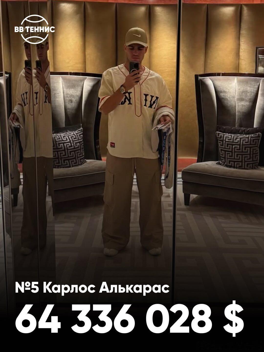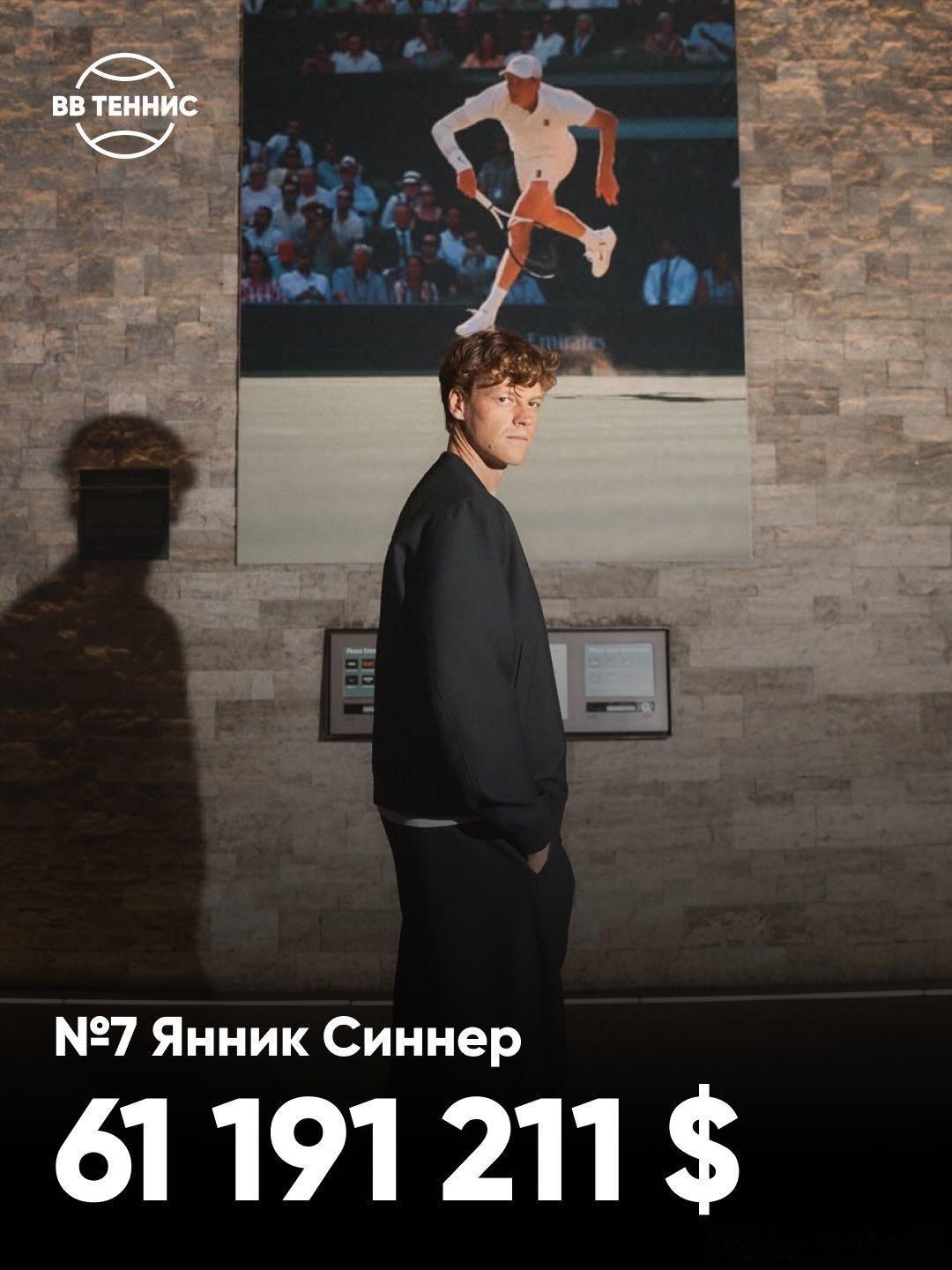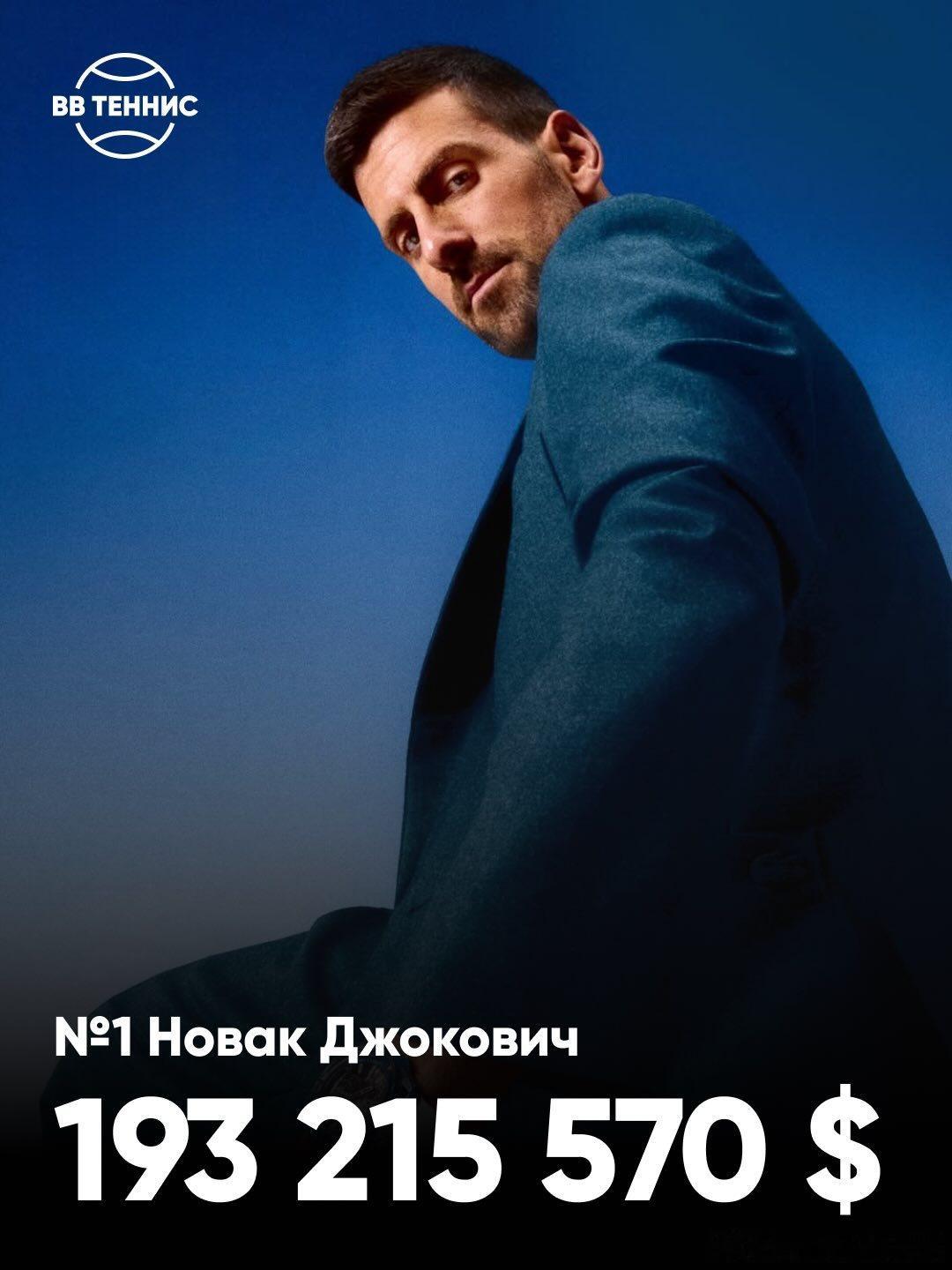 1️⃣德约科维奇🇷🇸193215570💲2️⃣纳达尔🇪🇸134946100💲3️⃣费德勒🇨🇭 130594339💲4️⃣穆雷🇬🇧 64687542💲5️⃣阿尔卡拉斯🇪🇸 64336028💲6️⃣兹维列夫🇩🇪 61319289💲7️⃣辛纳🇮🇹 61191211💲8️⃣梅总🇷🇺 51213284💲9️⃣桑普拉斯🇺🇸 43280489💲(双子星稍微有点偏差,蒙卡决赛奖金未统计📉)