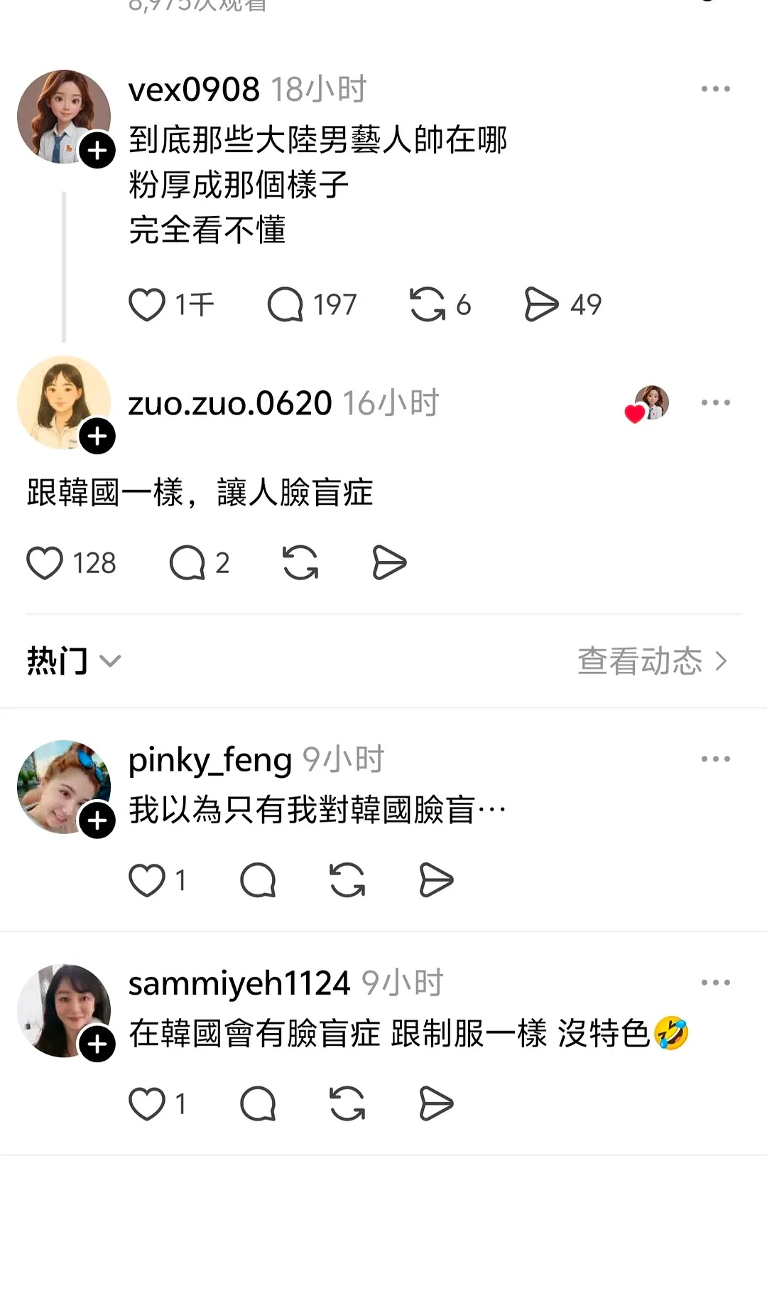 台湾人热议大陆男明星粉特别厚,还说都是学棒子的。。现在跟棒子混在一起几乎都认不出来哪个是棒子。。。