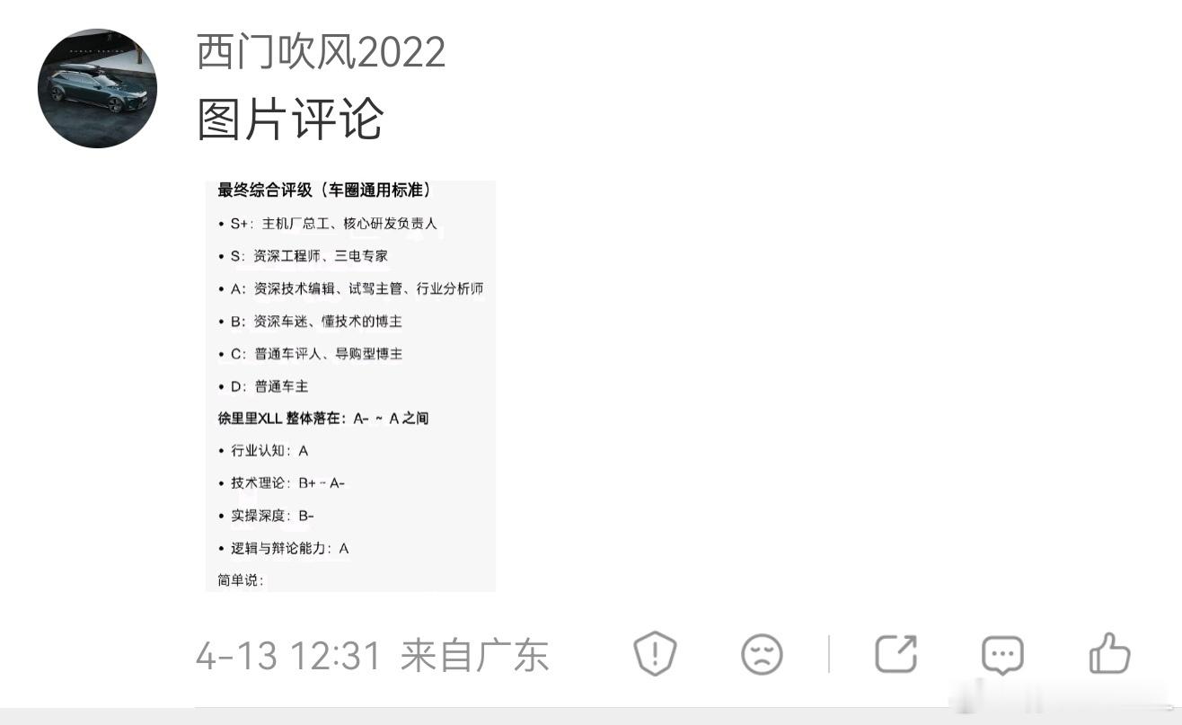 这评价看起来不低啊?最低都是个B-,综合来看远超普通车评人?