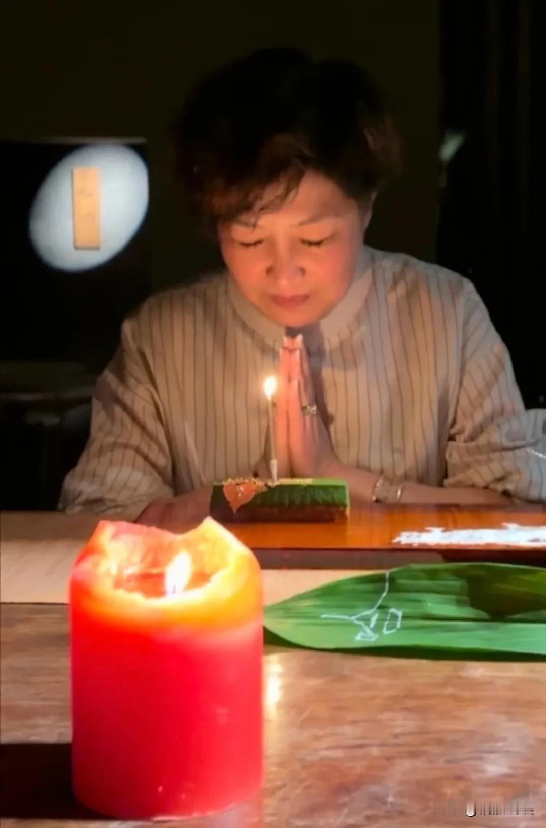 李咏的妻子,哈文晒照,庆祝57岁生日。 照片中的她,留着一头短卷发,妆容精致。 她身前的桌子上放了一个小小的蛋糕,桌子上的粽叶,写了一个“哈”字,她双手合十正在许愿,无名指上戴着戒指,有点像婚戒,这是寓意着亡夫李咏陪伴着她过生日吧。 看脸感觉她瘦了不少,但是气质依然优雅、知性。 自从李咏逝去后,她一直在美国纽约陪女儿法图麦读书,偶尔也会回来国内探亲。 不过女儿现在已经从哥伦比亚大学毕业了,不知道会不会回来国内工作呢?