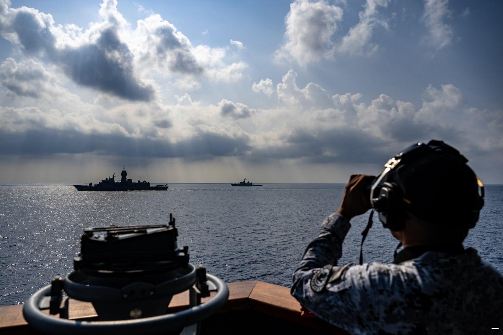 菲美澳4 月 9 日至 12 日进行所谓“多边海上合作活动”。解放军南部战区发言人表示,菲律宾拉拢域外国家组织所谓“联合巡航”,搅局南海,破坏地区和平稳定。战区部队将坚决捍卫国家领土主权和海洋权益,坚定维护地区和平稳定。南海态势