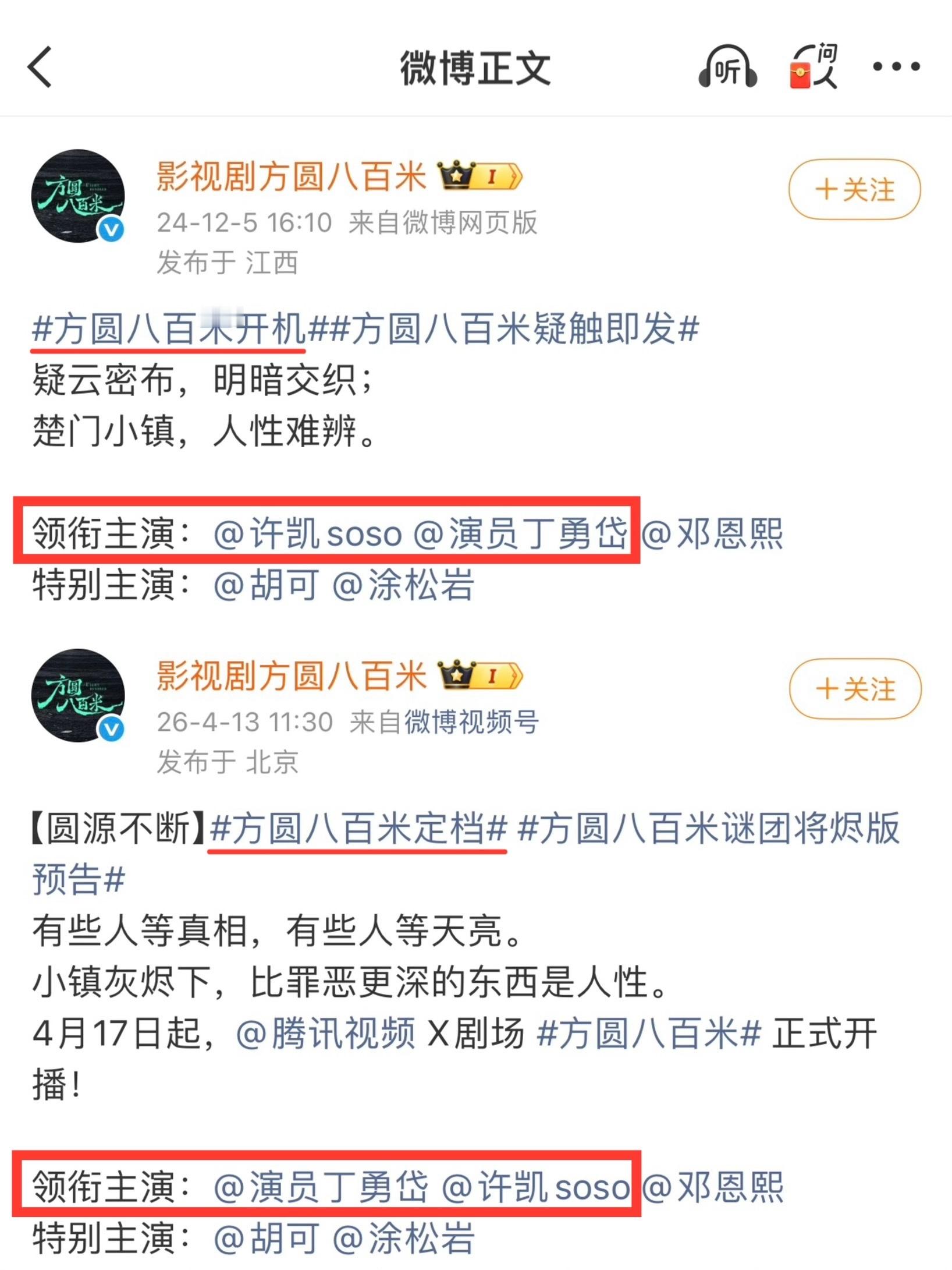 《方圆八百米》定档许凯一番变二番。。。