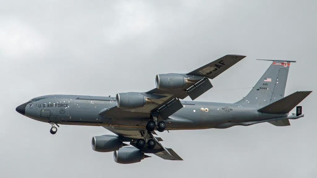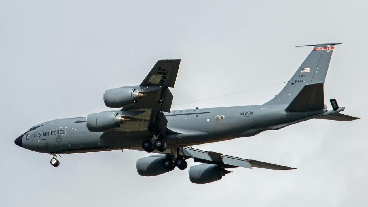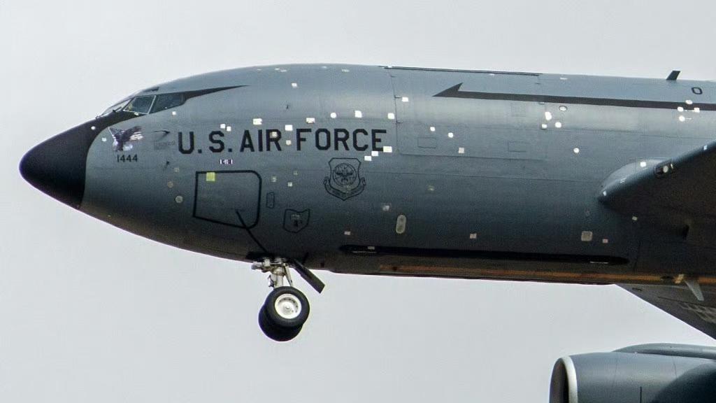 根据现场画面显示,日前部署在中东地区的美军一架KC-135加油机,在遭到伊朗袭受损以及现场维修后,目前这架KC-135加油机已经抵达了英国米尔登霍尔皇家空军基地。