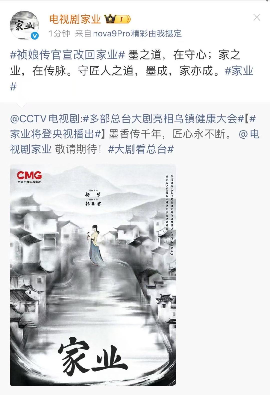 杨紫祯娘传官宣改回家业杨紫家业官宣改回 杨紫祯娘传官宣改回家业
