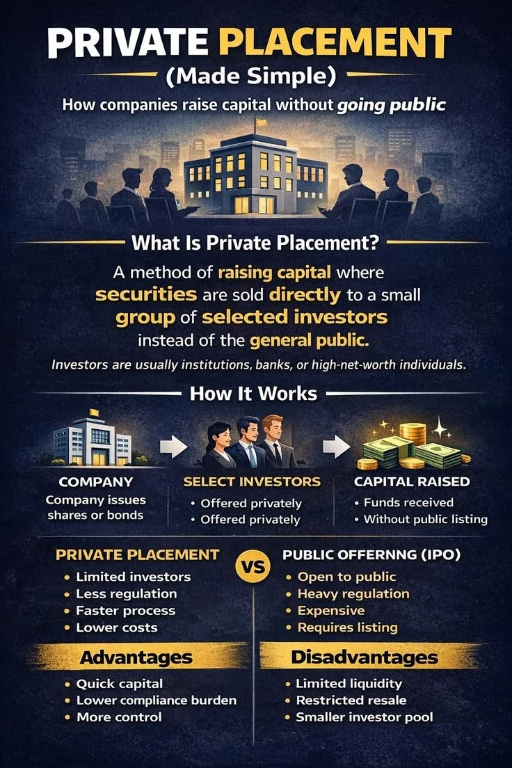 私募配售是一种融资方式,公司将证券直接卖给少数特定投资者,而不是向公众开放。这些投资者通常是机构、银行或高净值人群,本质上是一种“定向融资”。
