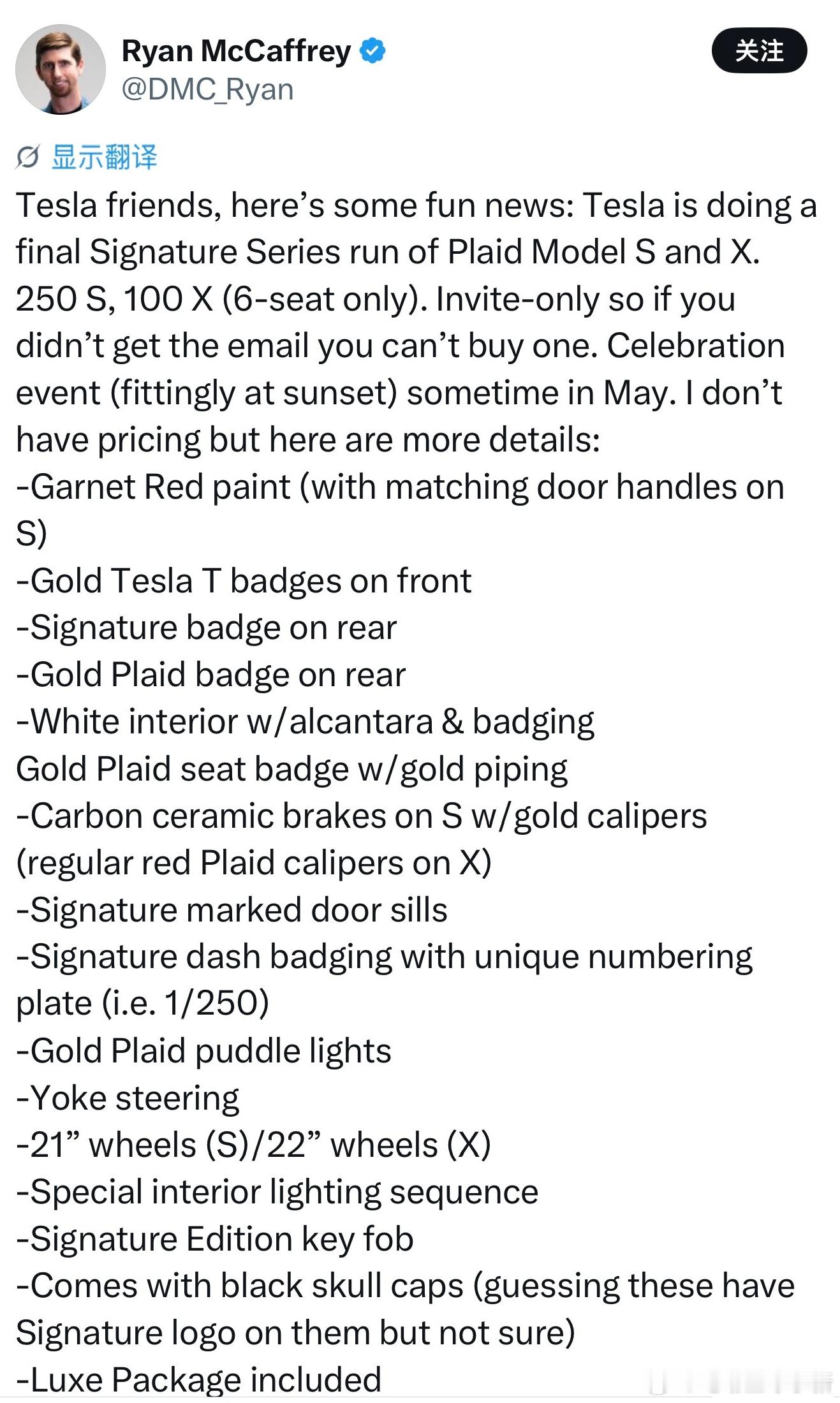 全球仅 350 辆,其中 Model S 250 辆、Model X 100 辆,购买还是邀请制,纯纯收藏向了。