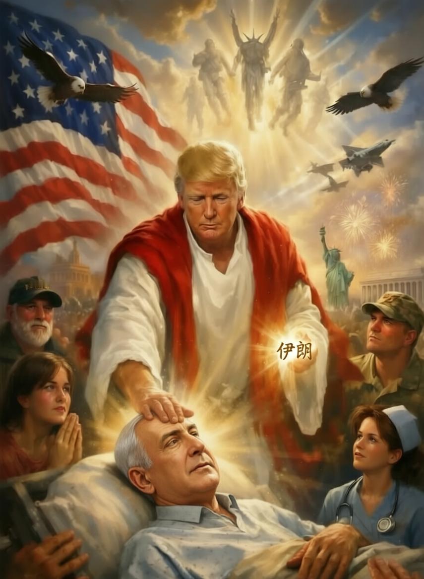 川普的这张图又被玩坏了[大笑][大笑][大笑][大笑][大笑] 川普说:大胡,起来吃药了!
