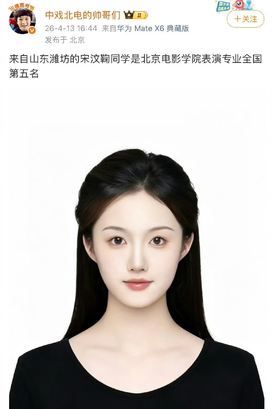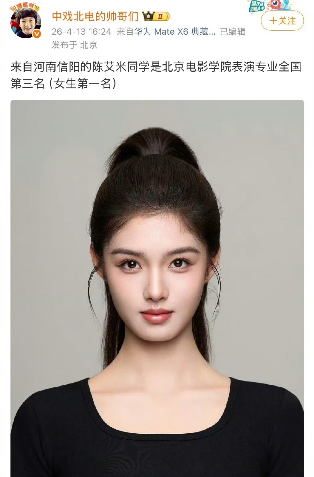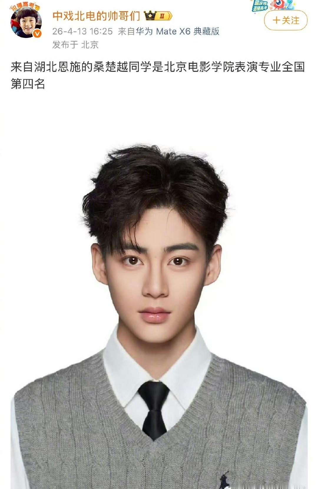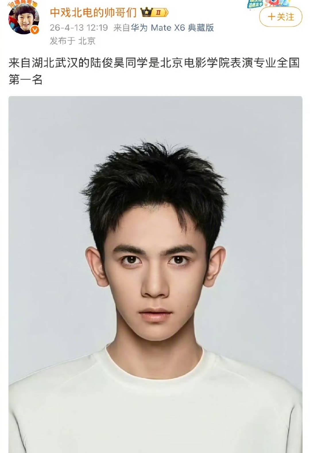 据说北京电影学院表演专业前五名,以后可能都是娱乐圈的中流砥柱。湖北武汉的陆俊昊直接拿下全国第一,同是武汉的胡武圆稳坐全国第二、还是应届第一,武汉这是什么艺考神仙窝啊!河南信阳的陈艾米拿下全国第三、女生榜第一名,高马尾造型灵气直接拉满!还有湖北恩施的桑楚越、山东潍坊的宋汶鞠,稳稳拿下四五名,个个都是颜值和硬实力双在线!