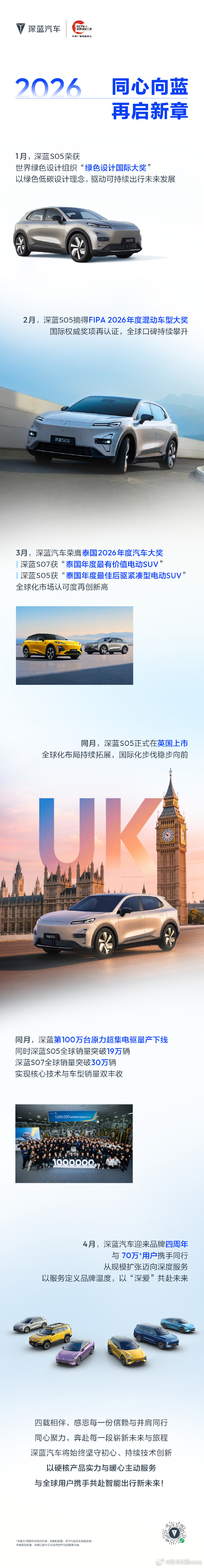 四年深耕,以热爱赴新程从品牌发布到全球布局从技术破界到70万+用户同行深蓝汽车4周年一起FUN4深爱,同心向蓝! 深蓝汽车FUN4深爱同心向蓝