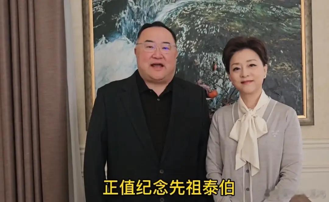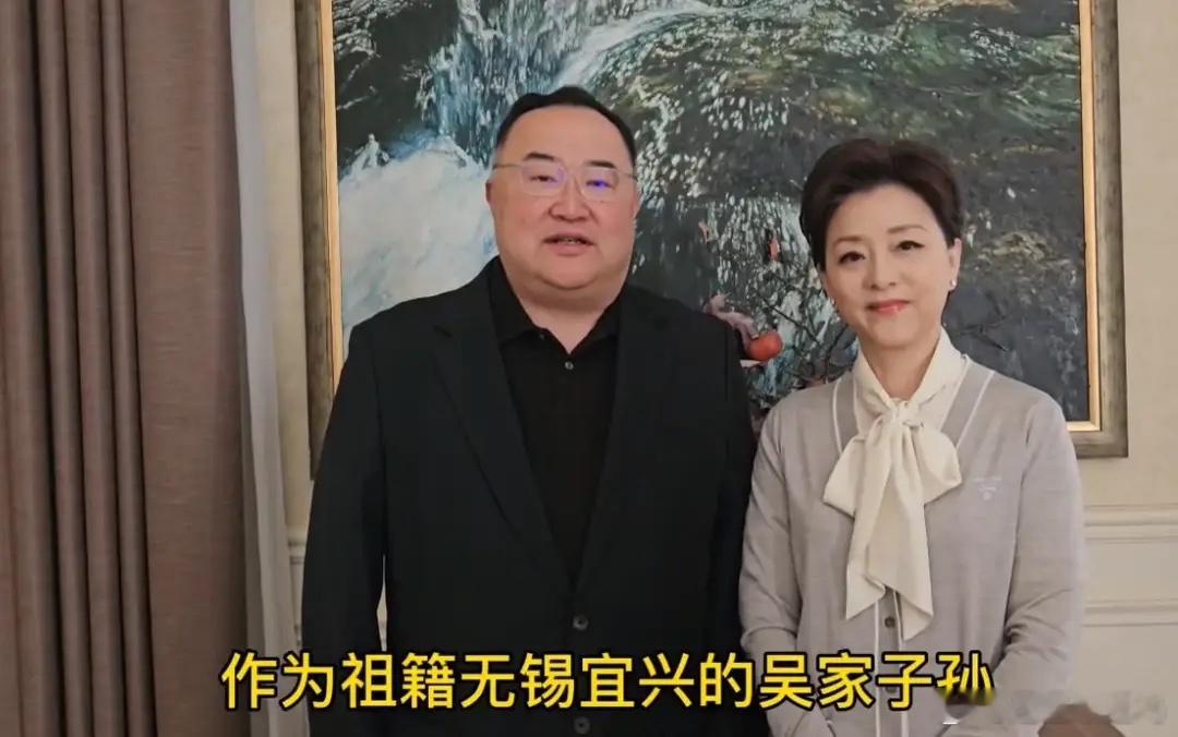 58岁杨澜陪夫出镜,吴征体型是她两倍宽,全程主导讲话杨澜只陪笑!