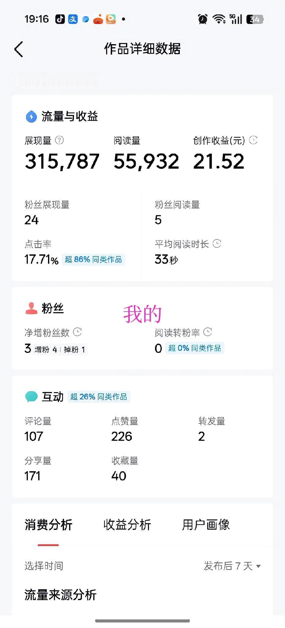 天差地别! 同样写微头条, 我的单价0.38元, 别人居然2.3元! 谁懂新手做头条的崩溃啊😭 同样都是原创微头条, 别人千次单价2.3, 我只有可怜的0.38! 差了整整6倍多, 流量爆了收益却少得可怜, 真的越写越心寒! 我一条爆文5万多阅读, 一天拿22块多收益。 别人只有3千多阅读, 一天就能稳稳入账6.96。 流量碾压别人, 收益却被狠狠反超, 完全摸不透平台算账逻辑。 明明我的点击率、 阅读时长、评论互动全达标, 远超同类作品。 不违规不搬运, 老老实实写原创日常, 可单价就是上不去。 到底是人群标签不对? 内容赛道不行? 还是账号权重被隐形打压? 辛辛苦苦熬夜写文案、 追热点、打磨内容, 结果流量越高, 越觉得付出和回报不成正比。 有没有懂行的大佬, 一眼看穿我的问题到底在哪? 到底还要熬多久, 我的单价才能追上别人零头, 普通人坚持做头条真的还有希望吗?