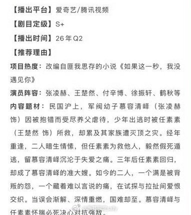 张凌赫、王楚然的《这一秒过火》开启招商,q2播出