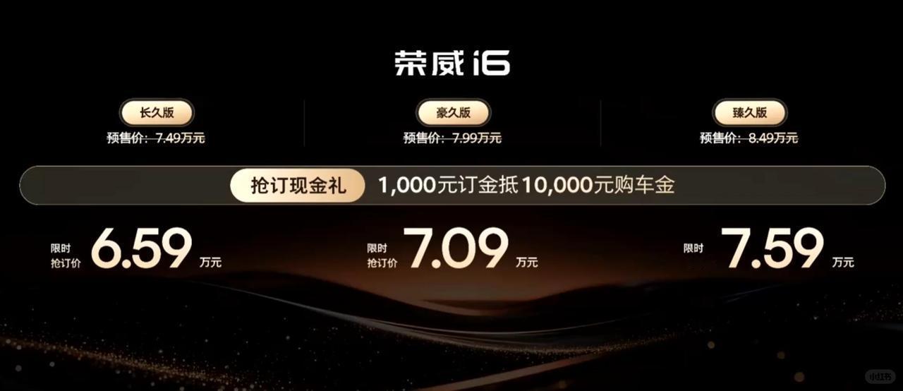 6.59-7.59万的荣威i6不比卡罗拉香吗? 荣威i6这价格很香啊 规格4767*1828*1498mm,轴距有2755mm,现在定位是A+级,已经有老B级的空间了。动力方面有1.5L的发动机+CVT的组合,平顺不卡,油耗还低,吃的92号油,基本没啥问题。内饰上面大面积软包,同级别来说基本是最大的(他说9.86平的软包面积),带上15.6英寸2.5k中控大屏,高配搭载高通8155新品啊,基本不卡。 低配6.59万 LED大灯/3D贯穿尾灯/电动天窗/16寸轮毂/10.25中控屏/8.8仪表屏 皮座椅+皮方向盘+手调座椅/电辅热后视镜/无要是进入+启动/4扬声器 后排出风口/倒车影像/定速巡航/后泊车雷达 中配7.09万 17寸轮毂/15.6中控屏/8.8液晶仪表/AI语音大模型 主驾电调+副驾手调/远程启动/360影像+透明底盘+行车记录仪 高配7.59万 50w无线快充/主副驾电调+前排加热通风/后视镜电折叠/6扬声器 教授觉得这台车最低配已经不错了,需要加强中控、主驾电调、360影像才要中配,需要全套才顶配,一般低配都够用。毕竟6.59万的车子,基本配置都配齐了,还要啥自行车呢。【来自懂车帝车友圈】