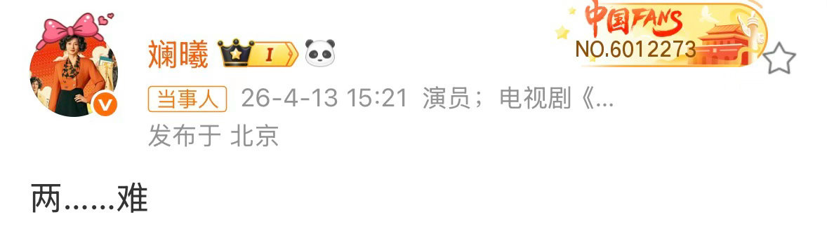 眉姐姐斓曦怎么了 4月13日,甄嬛传中沈眉庄扮演者发文:“两……难。” 眉姐姐这是怎么了?