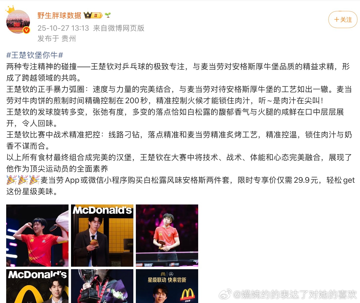 肯德基就这样如此满意孙颖莎这个代言人孙颖莎