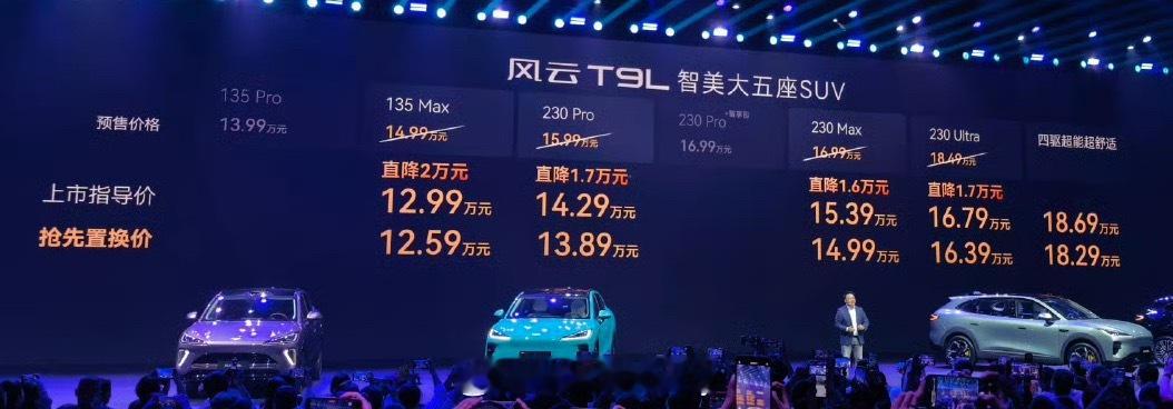 风云T9L来了135 Max:12.99万元230 Pro:14.29万元230 Max:15.39万元230 Ultra:16.79万元四驱超能超舒适:18.69万元定位 智美大五座SUV