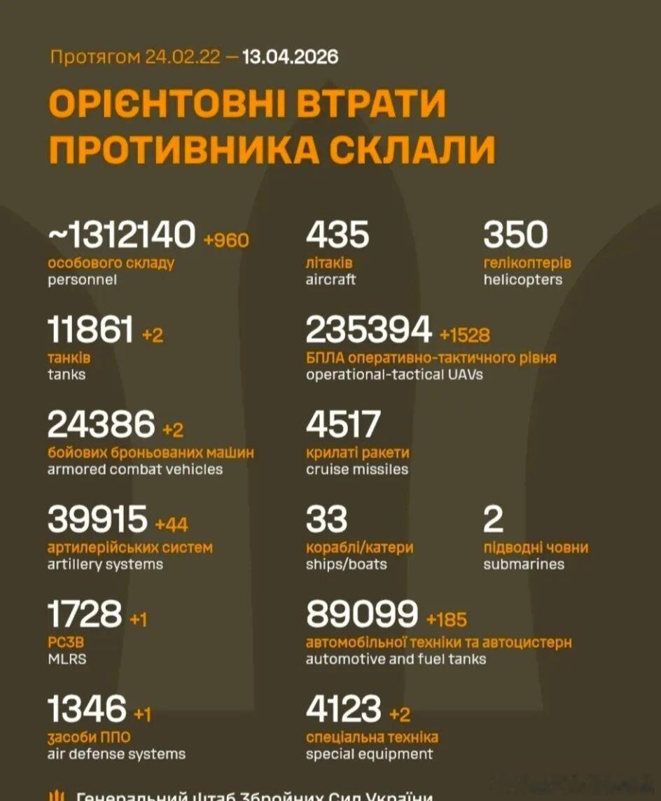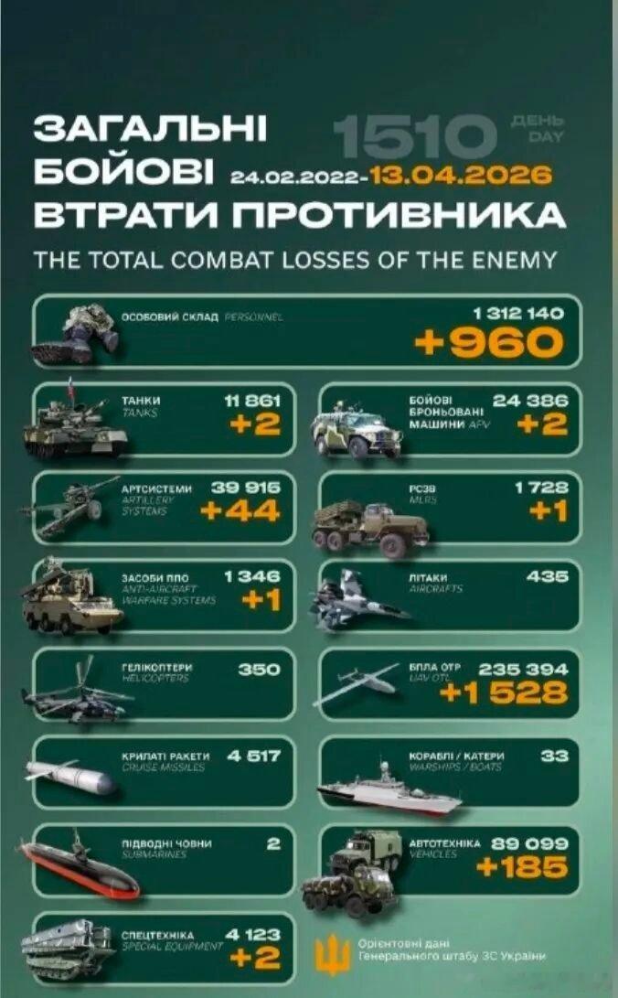 乌俄战争进入第1510天,乌克兰总参谋部发布战报:过去24小时俄军发动进攻93次,其中13次在胡利亚伊波列(21次在苏梅)、20次在康斯坦丁诺夫卡、6次在利曼、29次在波克罗夫斯克、4次在南顿涅茨克区域。毙伤俄960名。俄军累计损失1312140人。摧毁俄2辆坦克、2辆装甲车、44门火炮、1个火箭发射装置、1套防空系统、1528架大型无人机、185辆军车、2件特种设备。