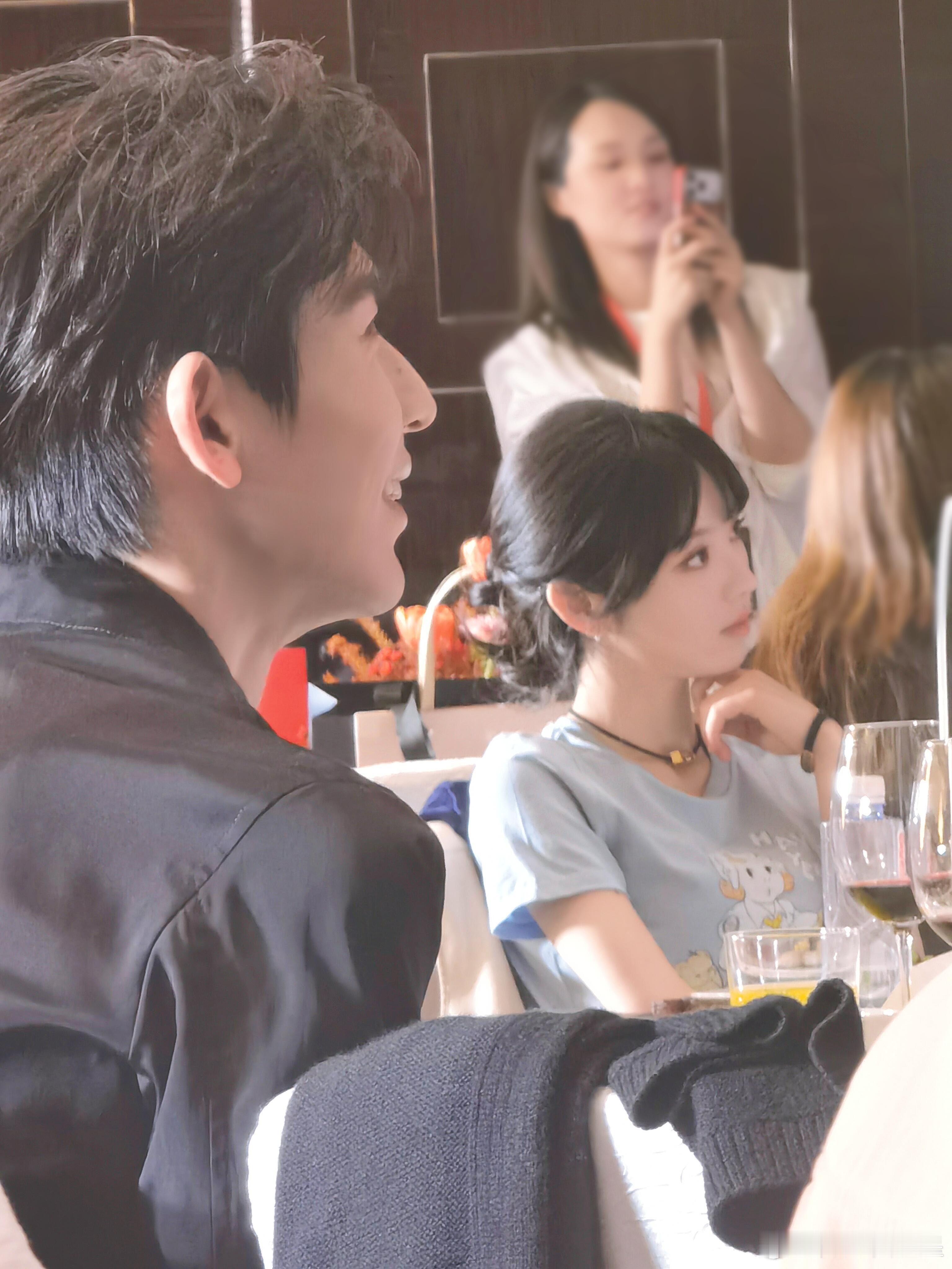 等了一晚上,终于放饭了!张凌赫田曦薇就这么岁月静好的坐在一起张凌赫逐玉庆功宴发言