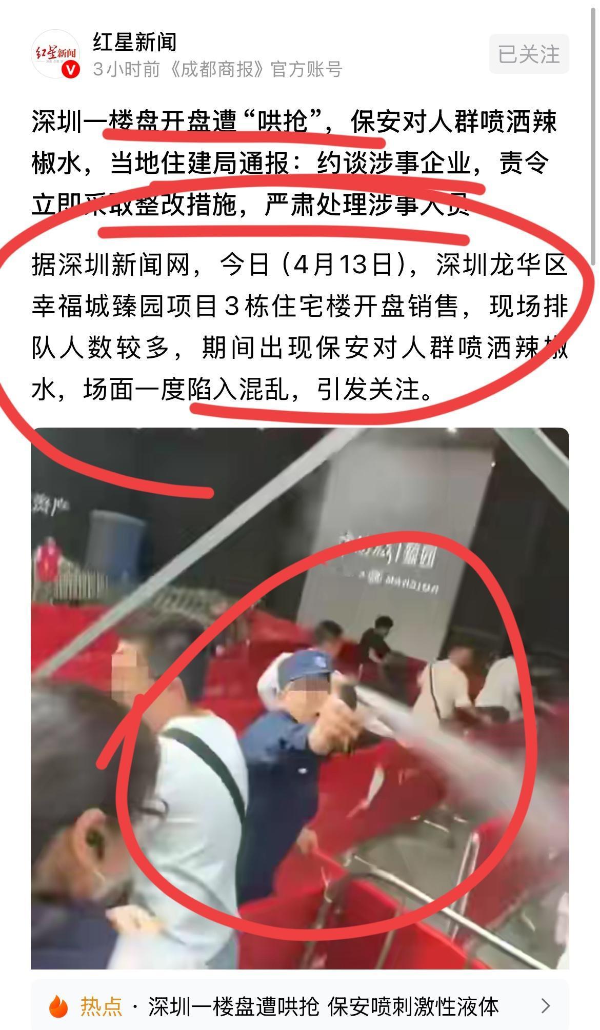 太狠了,深圳楼盘再遭哄抢!! 保安喷辣椒水驱散哄抢人群! 大变天了,楼市要暴涨了么? 看这架势,楼市不复苏都不行了~ 专家解读还是很到位的,都说要复苏了,不复苏经济怎么办? 房地产之父孟总都说了,已经定调了,大概率今天稳住,并涨起来~ 什么都可以跌,唯独房价不能跌,否则,老百姓就不会进场接盘!! 据媒体报道的最新消息,喷辣椒水的保安是兼职保安,已经严肃处理,大家稍安勿躁! 楼市要变天了,你准备好资金进场接盘了么?
