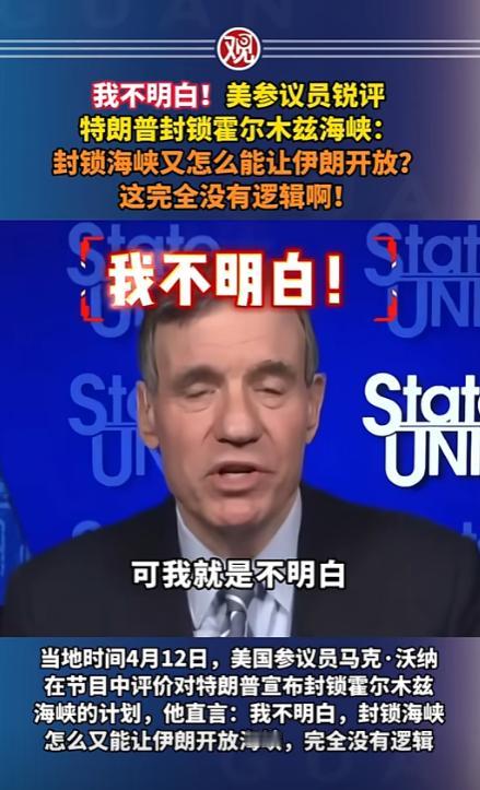 美国参议员当场吐槽特朗普,把海峡封死了,还想让伊朗开放?这逻辑根本说不通,简直是离谱到家的操作。 当地4月12日,美国参议员马克·沃纳在节目上直接把话挑明,特朗普说要靠封锁海峡逼伊朗服软,让航道恢复畅通、油价降下来。 沃纳当场一脸无奈,反复吐槽这逻辑根本站不住脚,你都把路堵死了,还指望伊朗乖乖给你开门?这不纯纯的矛盾吗? 这话戳中了要害,霍尔木兹海峡攥着全球近三分之一石油运输的命脉,伊朗手里的快艇、水雷可不是摆设。 真要硬来,美国一封锁,伊朗直接在航道里布雷、袭扰油轮,到时候整条通道彻底瘫痪,油价只会疯涨,和特朗普喊的目标完全背道而驰。 更打脸的是,这事赶在美伊谈判的节骨眼上,双方刚在巴基斯坦谈完,这边就放出狠话,把本就紧张的关系直接推到悬崖边。 为了圆这个离谱的计划,美军又改口说不封主航道,只拦进出伊朗港口的船只,可这说法,连自家议员都不信,谁都看得出来,就是怕直接封航道闯大祸,又得硬撑着装强硬。 网友都看乐了,这哪是战略部署,分明是没经过脑子的政治表演。 对着全球画大饼,结果连“堵路”和“开路”的基本逻辑都搞反了,也难怪自己人都看不下去,直接当众拆台。 说到底,靠拍脑袋定的对外决策,连最基本的逻辑都站不住脚,既压不住对手,也哄不住自己人,这场闹剧到最后,不过是给全世界添了个笑料,顺便又给油价添了一把火。 信息来源:观察者网《我不明白!美参议员锐评特朗普封锁霍尔木兹海峡:封锁海峡又怎么能让伊朗开放?这完全没有逻辑啊!》 2026年4月13日报道