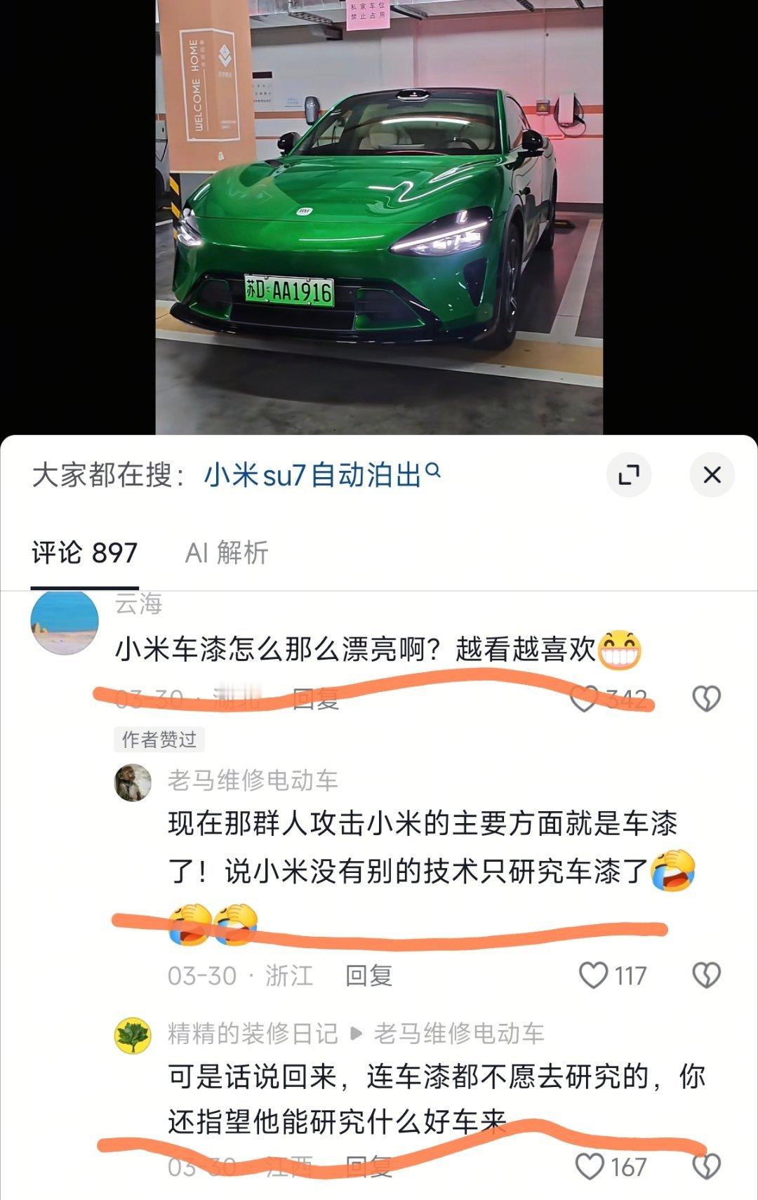 “小米车漆怎么那么漂亮啊?越看越喜欢。”