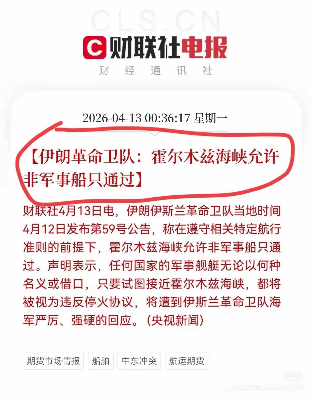 伊朗这步棋下得不错,美国刚宣称封锁霍尔木兹海峡,禁止所有的船通过霍尔木兹海峡,伊朗快速应对,公告允许非军事船只通过霍尔木兹海峡,变相的解封了霍木兹海峡,如果这个时候美国封锁霍木兹海峡,压力将给到美国这边。 美国这回是真栽了。你喊封锁,人家直接喊开放。全世界都听见了。谁才是那个拦路的恶霸?一目了然。 我查了一下最新消息。2026年4月13日,伊朗外交部正式发了声明。非军事船只随便走。军事船只别来。这招太精了。 欧洲那些油轮公司当场松了一口气。英国石油公司的油轮已经恢复通行了。日本、韩国的船也在排队。美国要是敢拦,那就是跟全球过不去。 伊朗这招叫“你打你的,我打我的”。你要封锁是吧?我偏不跟你对着封锁。我直接解封。你还怎么封? 白宫那边现在沉默得很。记者追问了三轮,发言人支支吾吾。说“正在评估”。评估什么?评估自己怎么下台? 想想看,美军真敢开炮拦一艘挂着希腊旗的油轮吗?那艘船上装的可是意大利买的石油。这一炮打出去,北约先炸锅。 伊朗这一手,把“谁是好人谁是坏人”这顶帽子硬扣在了美国头上。你不是爱当世界警察吗?现在全世界都盯着你,看你敢不敢开枪。 一艘油轮被拦,油价就能跳涨十美元。美国国内通胀还没压下去呢。拜登政府扛得住?特朗普更扛不住。 霍尔木兹海峡最窄的地方才30多公里。伊朗岸防部队的导弹就架在那儿。美国航母开进去都得掂量掂量。更别说拦船了。 这就好比你家门口有条路。你邻居说“这条路我封了”。你直接站出来说“大家随便走”。邻居还敢堵路吗?堵了就是他的错。 伊朗革命卫队的指挥官昨天出来说话了。话很短:“我们没有封锁任何人,我们只保护自己的航道。”这话说得多漂亮。滴水不漏。 美国现在只有两条路。第一条:认怂,悄悄撤掉封锁令。第二条:硬拦,然后被全世界指着鼻子骂。选哪个都不舒服。 有一个细节特别有意思。伊朗这份公告是用英语、阿拉伯语、波斯语同时发的。明显是写给全世界看的。不是写给华盛顿看的。 以前是美国定规矩,别人守规矩。现在是伊朗定规矩,美国看着办。时代变了。别不服。 各位读者你们怎么看?欢迎在评论区讨论。