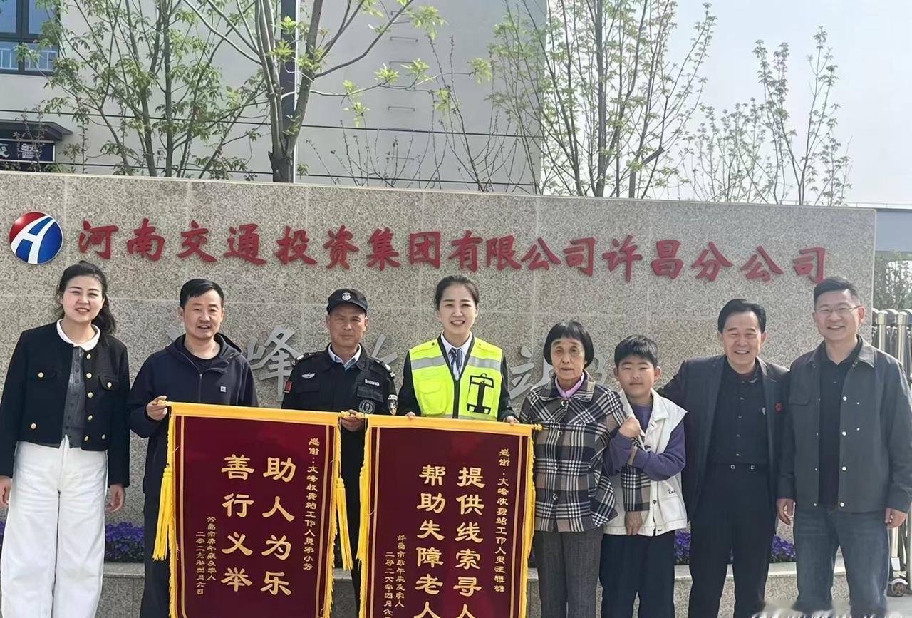 【河南交通:许昌分公司 | 暖心救助迷路老人 锦旗致谢高速服务】 4月12日,受助老人家属专程来到许昌分公司所属文峰收费站,将一面印有感谢字样的锦旗送到员工汪程锦、保安李小芳手中,对两位同志在紧急时刻挺身而出、暖心帮扶迷路老人平安归家表示诚挚谢意。一面锦旗,既承载着家属的感激之情,也彰显了许昌高速服务的温情与担当。 4月7日凌晨2时10分许,文峰收费站值班人员汪程锦、张慧莹在日常巡查时,发现一名老人独自在高速管控区域内徘徊,神色茫然、步履蹒跚,疑似走失。发现情况后,汪程锦第一时间上前安抚老人情绪,耐心细致询问其身份信息、家庭住址及联系方式。在确认老人基本情况后,她立即联系值班保安李小芳协同处置,由李小芳将老人安全护送离开高速管控区域,并一路悉心陪护至村口,确保老人脱离危险、顺利与家人取得联系。 次日,汪程锦在微信朋友圈看到一则寻人启事,经信息核对,确认正是前夜救助的老人。她第一时间主动联系家属并提供关键线索,有效缩短了家属搜寻时间,帮助一家人顺利团聚。 汪程锦、李小芳同志坚守岗位、恪尽职守,面对突发情况反应迅速、处置规范,以实际行动解决群众急难愁盼,切实守护群众安全,充分展现了许昌分公司员工优良的职业素养、高度的责任意识和文明服务的良好形象,赢得了受助家属及过往司乘的高度认可与广泛赞誉。
