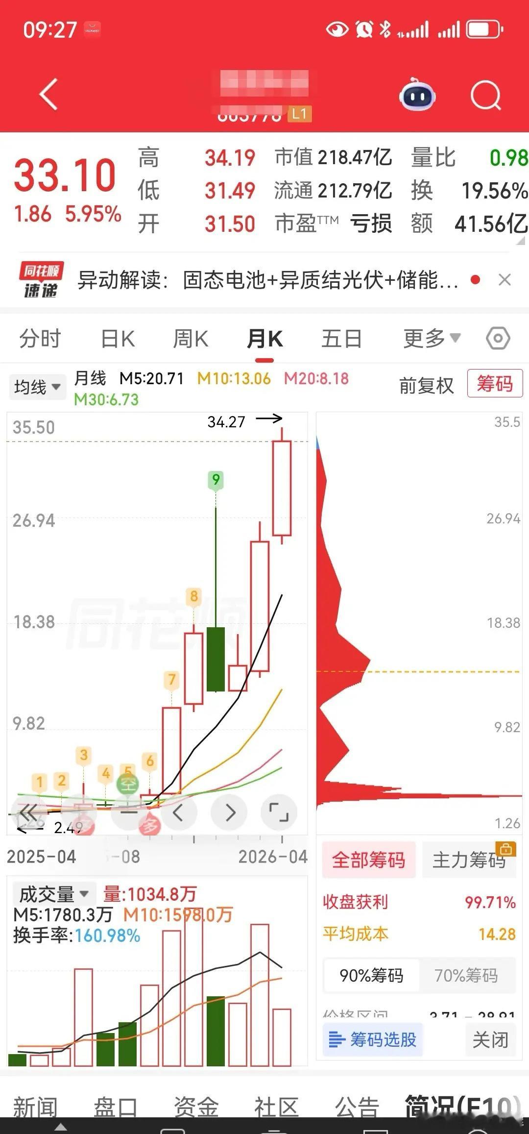 国晟科技,所属行业板块,为光伏设备,且成为目前整个光伏设备板块里面唯一一只,股价创下历史性新高,和年内涨幅超过2倍以上的超级大妖股,与此同时,国晟科技在今年以来的表现中,一直都是光伏设备板块中的领涨龙头一,而且时不时的,还会冲上人气热股榜……话说这真的不敢想象,也不敢去想。