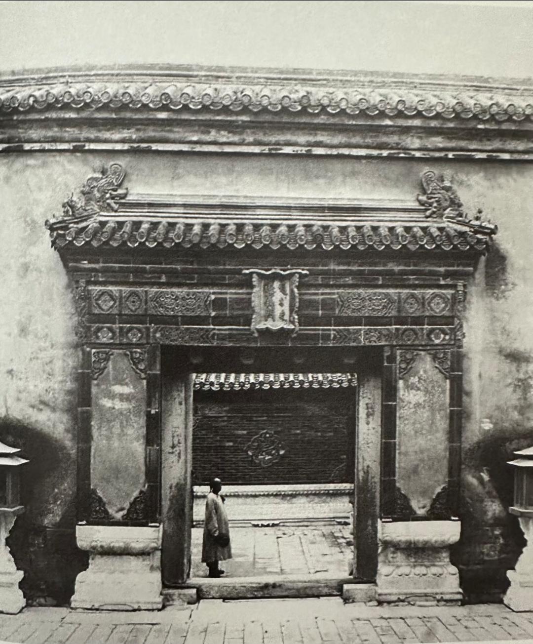 这是晚清一名太监安静地躺在中和殿西厢的廊下午睡。他将自己的帽子挂在后面的殿扉上。