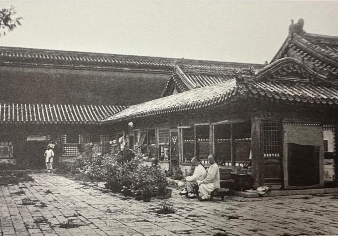 这是晚清太监坐在住所前边欣赏自己种的花草,边聊天。多数太监们虽然住在一起,但并不