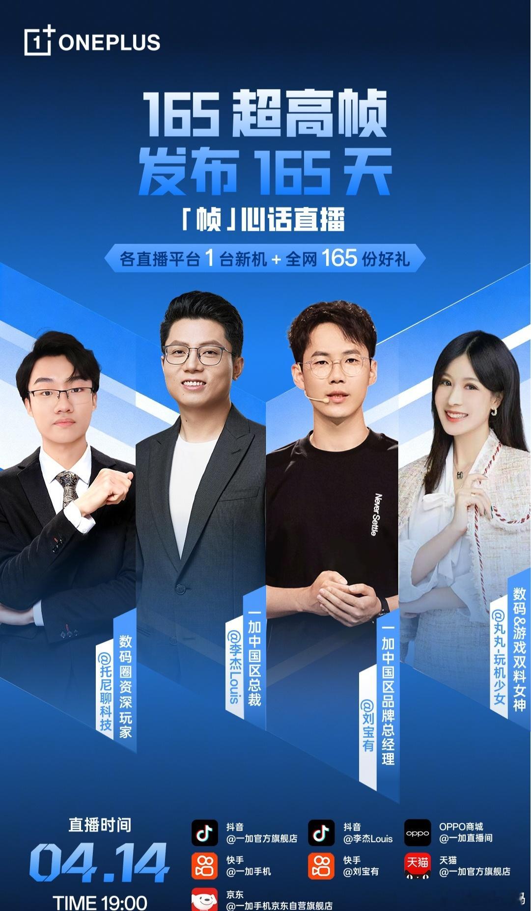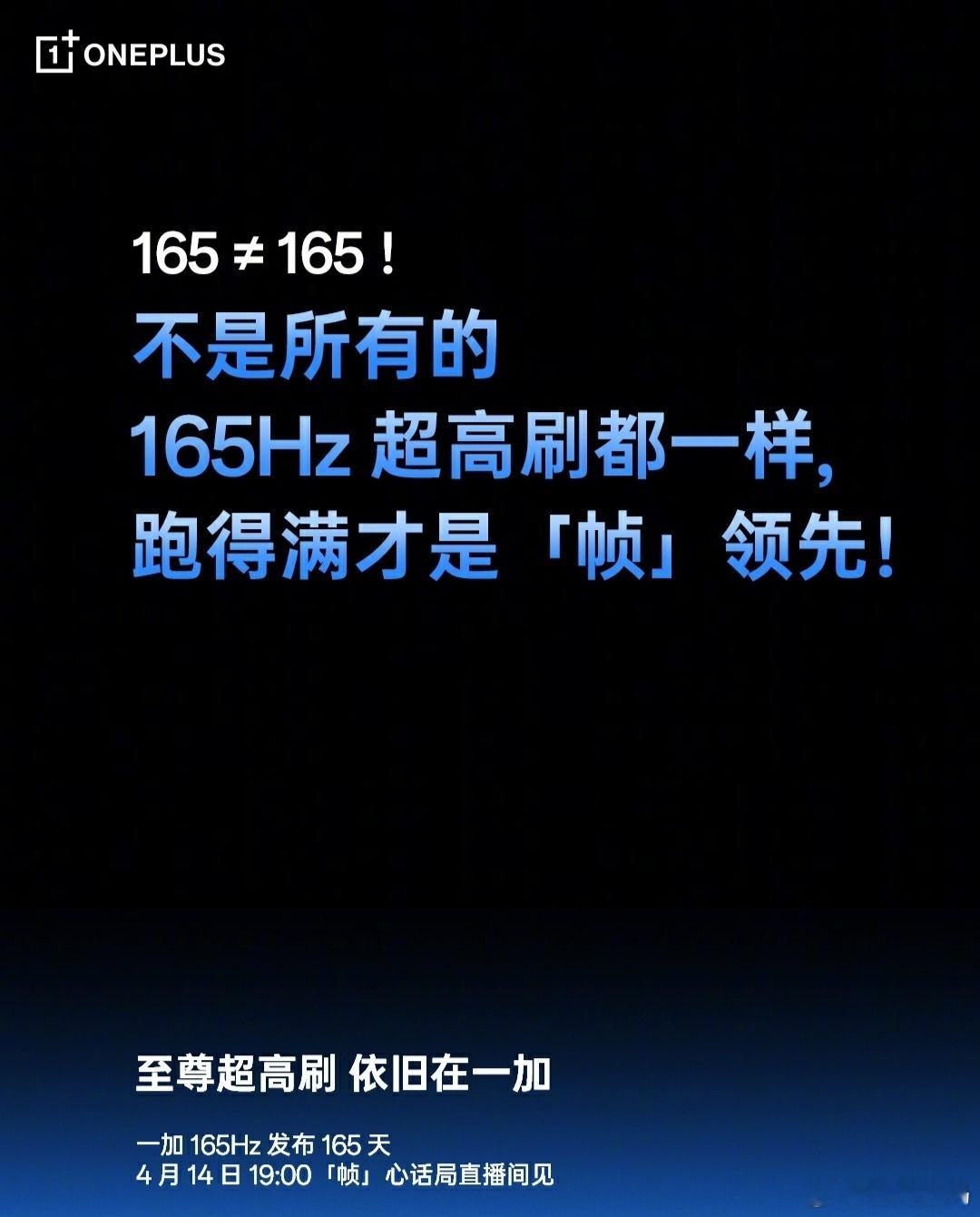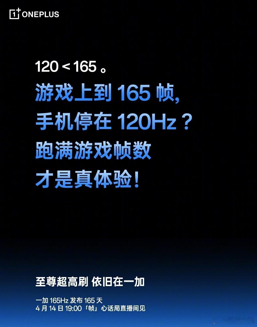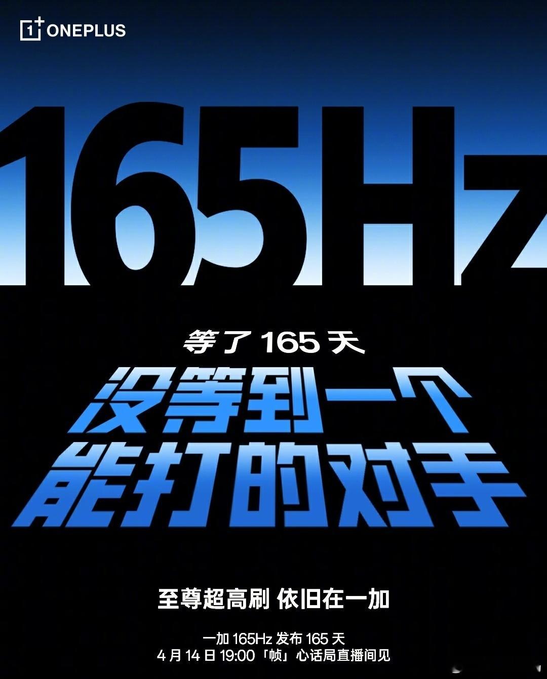 4 月 14 号有一场「帧」心话直播,聊聊为什么友商的 165Hz 手机不如一加,看来接下来的一加 Ace 6 至尊版也是 165Hz 了