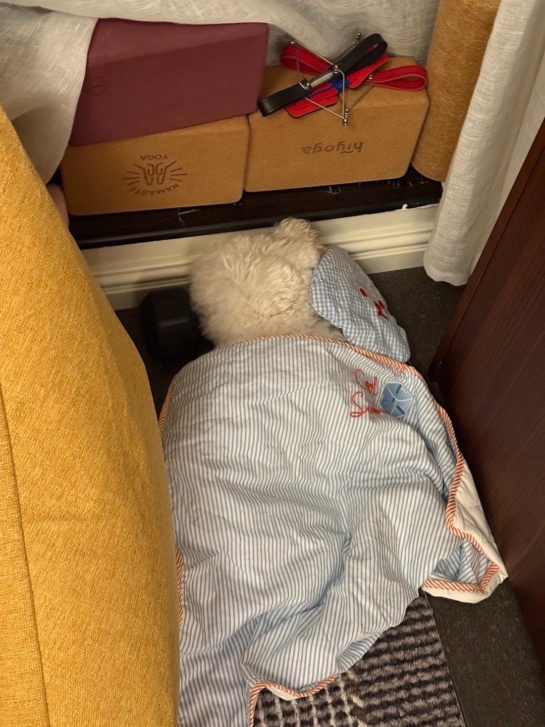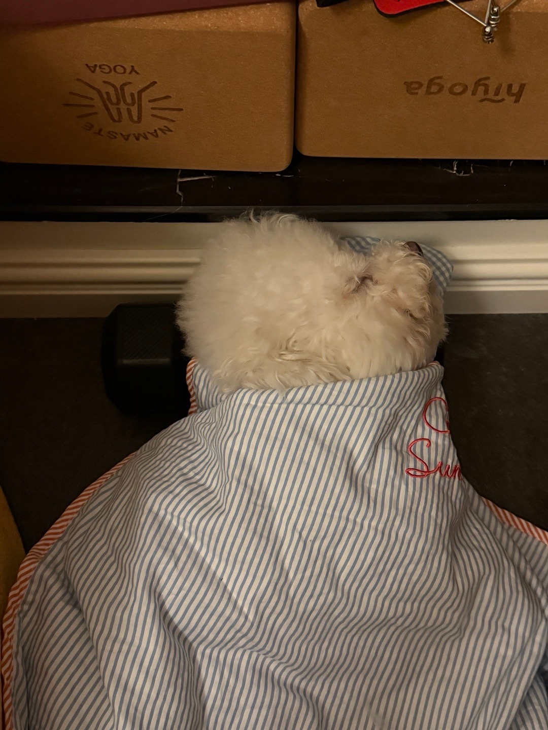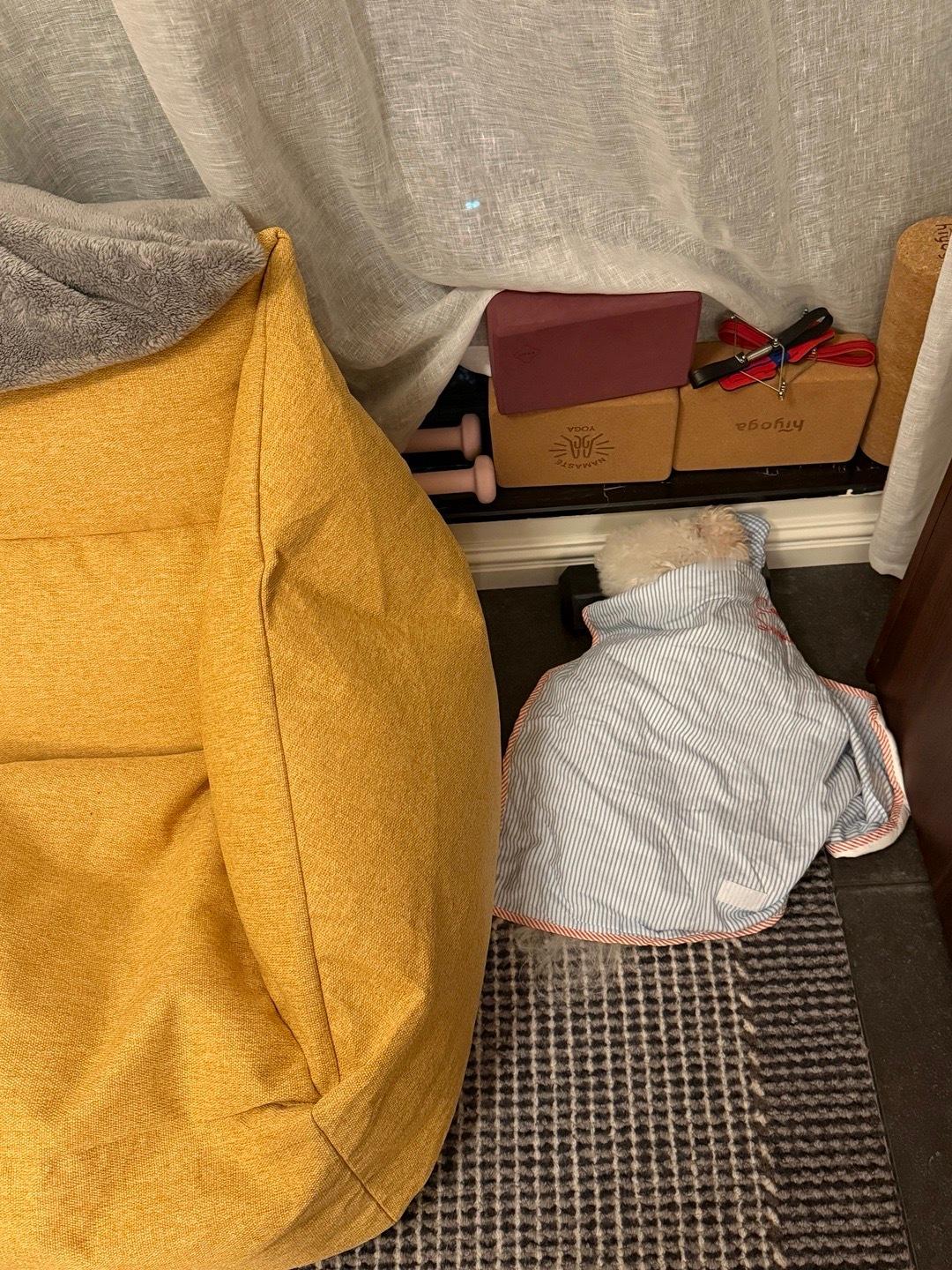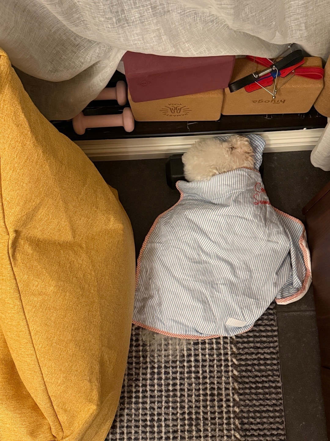 忙完扭头看见小ku枕着哑铃睡就觉得好笑 赶紧给他垫了一下脑袋瓜