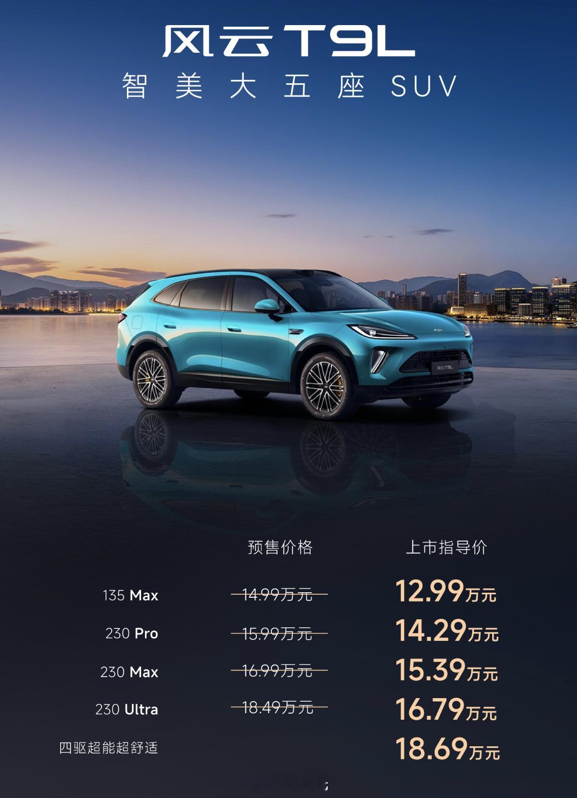 又是一台大五座SUV,奇瑞风云T5L。权益后价格12.99万元起,不到4米9的中型SUV,主打一个“便宜管饱”。