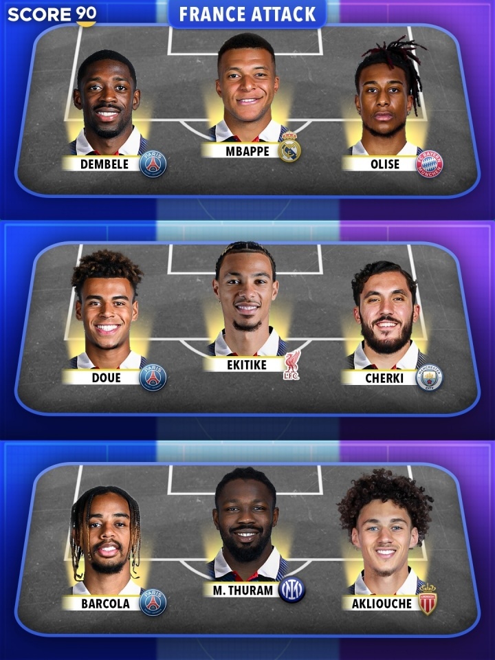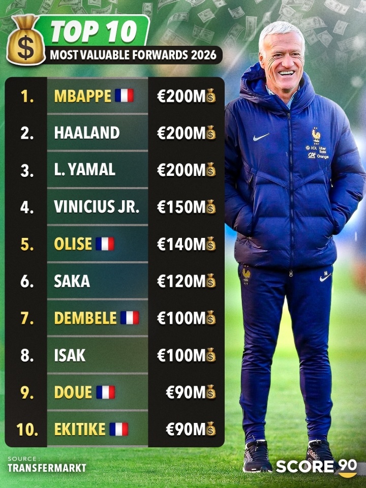 【恐怖如斯!法国3套锋线组合总身价8.55亿,前锋身价前10法国占5个】法国队进攻球员组合:(总身价8.55亿欧元)