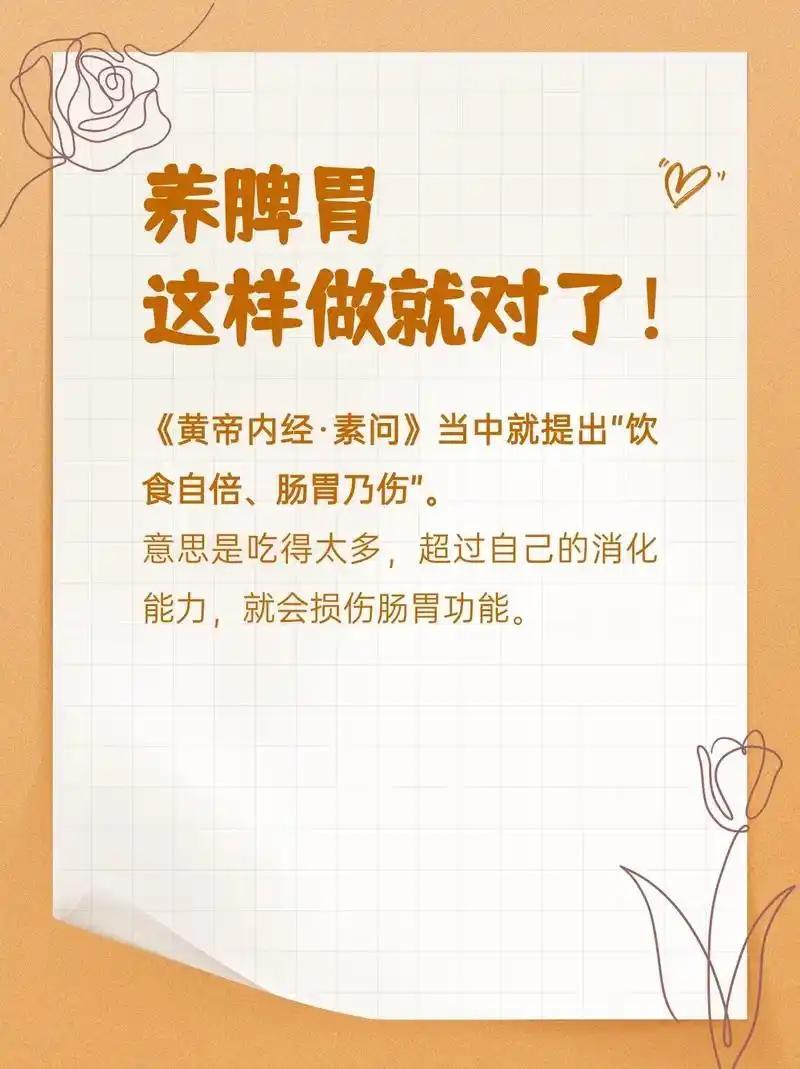 脾胃养护“七少”法:越吃越养,告别越补越虚 很多人脾胃虚弱,盲目吃人参、阿胶等补品,结果越补越虚、腹胀上火,根源就是脾胃本就虚弱,运化不了滋腻补品,反而加重负担。 中医养脾胃的核心,从来不是“多补”,而是“少伤”。坚持“七少”养护法,减少对脾胃的持续伤害,脾胃功能就能慢慢恢复,尤其适合中老年朋友日常调理。 一、现代人补养,为何越补越虚? 《素问·痹论》有言:“饮食自倍,肠胃乃伤”。脾胃运化能力有限,过度饮食、盲目进补,只会持续损伤脾胃: 1、孩子脾胃“成而未全”,过量高蛋白饮食易积食、脾虚肝旺; 2、中老年人脾胃功能衰退,盲目进补会出现“虚不受补”,腹胀上火。 二、“七少”养护法,筑牢脾胃根基 1. 少吃东西:给脾胃减负 每餐七八分饱,避免饭后腹胀、大便黏马桶;儿童遵循“333原则”,多吃小米、山药等健脾食物。 2. 少海鲜:守护脾阳 多数海鲜性寒,脾胃弱者每周吃1-2次即可,搭配姜葱中和寒性,忌刺身、冰镇海鲜。 3. 少辛辣:减少胃热 过量辛辣易伤胃、致气血逆乱,用葱蒜替代辣椒,吃辣后喝绿豆汤缓解不适。 4. 少水果:规避寒湿 寒性水果伤脾阳,温性水果生湿热,每日吃200g以内,脾胃虚寒者蒸热再吃。 5. 少晚餐:顺应运化节律 18点前吃完晚餐,吃清淡易消化食物,饭后散步摩腹,避免脾胃熬夜加班。 6. 少喝水:不盲目跟风 脾胃弱者不追求“每天八杯水”,遵循“不渴不饮”,喝温水,每次不超200ml。 7. 少寒凉:护住脾胃阳气 少吃冰饮凉菜,注意头颈、腹背、脚部保暖,夏季不坐石凳、不直吹空调。 “脾胃者,后天之本也,养脾胃不在补,而在不伤。少一分伤害,多一分健康,脾胃安,则五脏安。” 人过六十,养脾胃是头等大事。你平时有哪些养脾胃的小习惯?或者在调理上踩过什么坑?欢迎在评论区分享交流! (观点仅供参考,如有需求请需咨询专业人士)