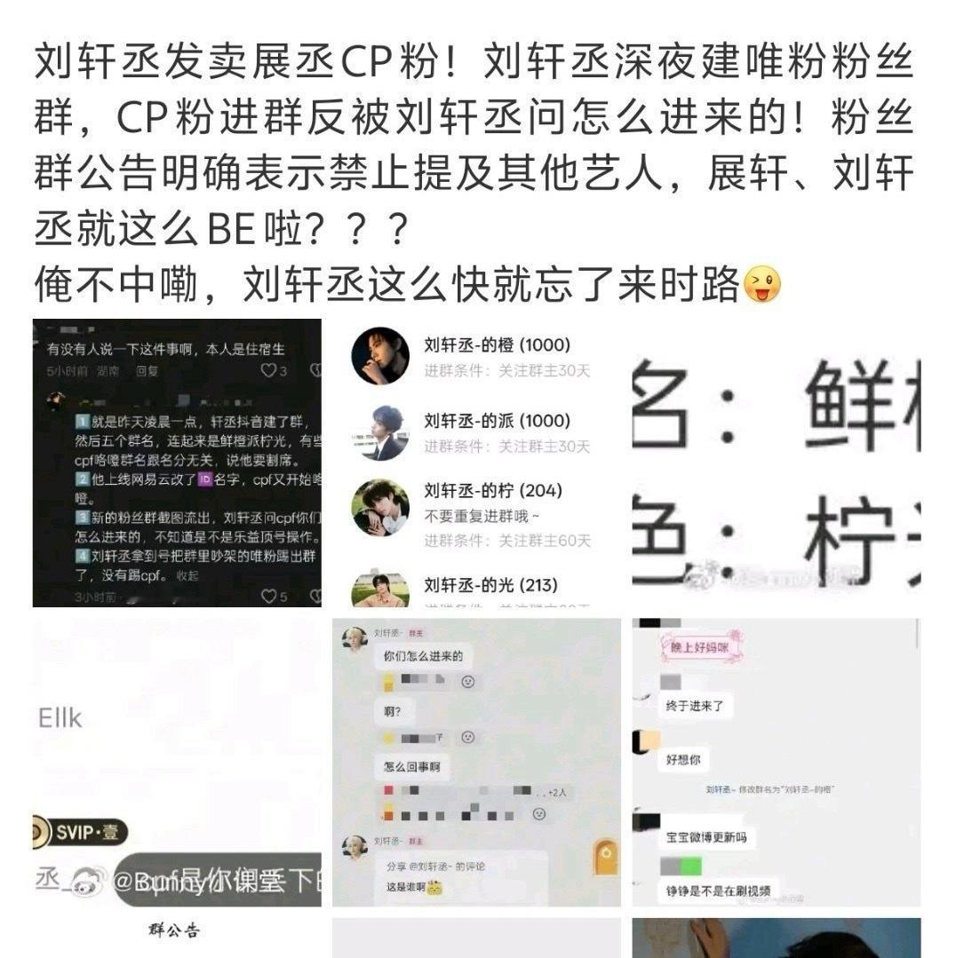 6.0副cp(展轩与刘轩丞)刘轩丞将抖音粉丝群名称从"展丞99"更改为唯粉导向的"刘轩丞-的派",关闭群聊AI功能并移除CP相关标签。部分群公告新增"禁止聊CP/RPS内容"条款,要求专注其个人活动