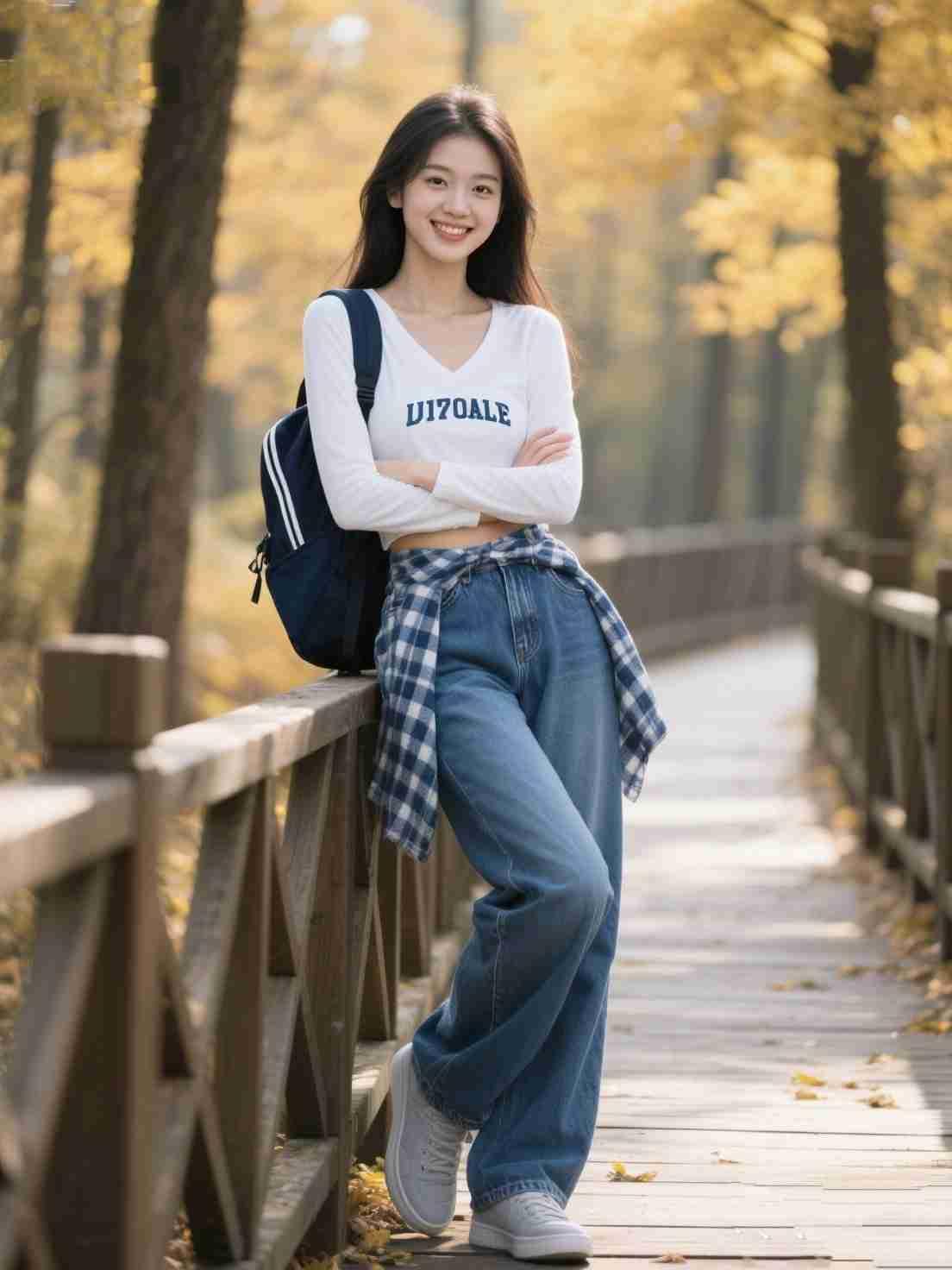 我的今日状态:😁轻松愉快 我这里的天气:☀️晴天 《秋林漫记》 金风漫染林梢色,木栈铺秋入画深。 一树晴光筛碎影,满阶落蕊覆轻尘。 蓝包斜挎青春色,白衫轻扬少女心。 格布闲垂腰畔软,牛仔漫卷裤脚匀。 笑靥明如秋阳暖,臂弯轻抱岁华新。 长林寂寂通幽处,小径悠悠载梦痕。 叶底风吟年少事,眉间光映少年身。 不须笔墨描清景,一帧鲜活胜千春。 行到秋深心自远,且将明媚付晨昏。