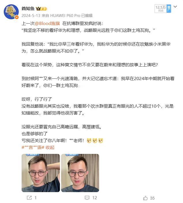 翻出来一篇以前的微博~现在艹也放出来了,蔚来也起飞了~不知道他哪天会一个滑跪,跑