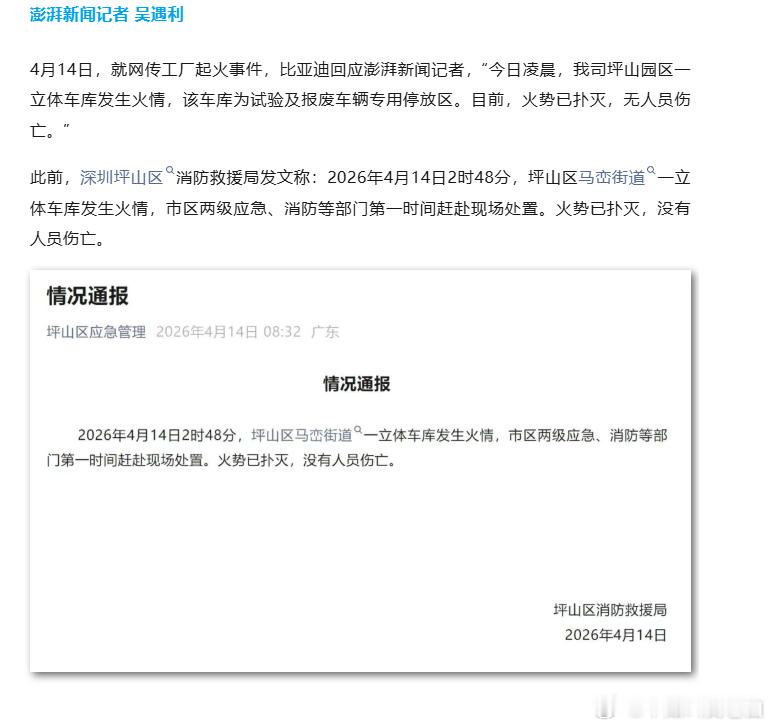 起火的是车库,散了散了。后续应该还会有更详细的火情说明比亚迪公司起火
