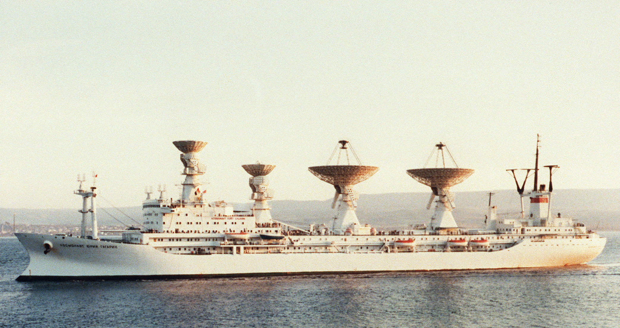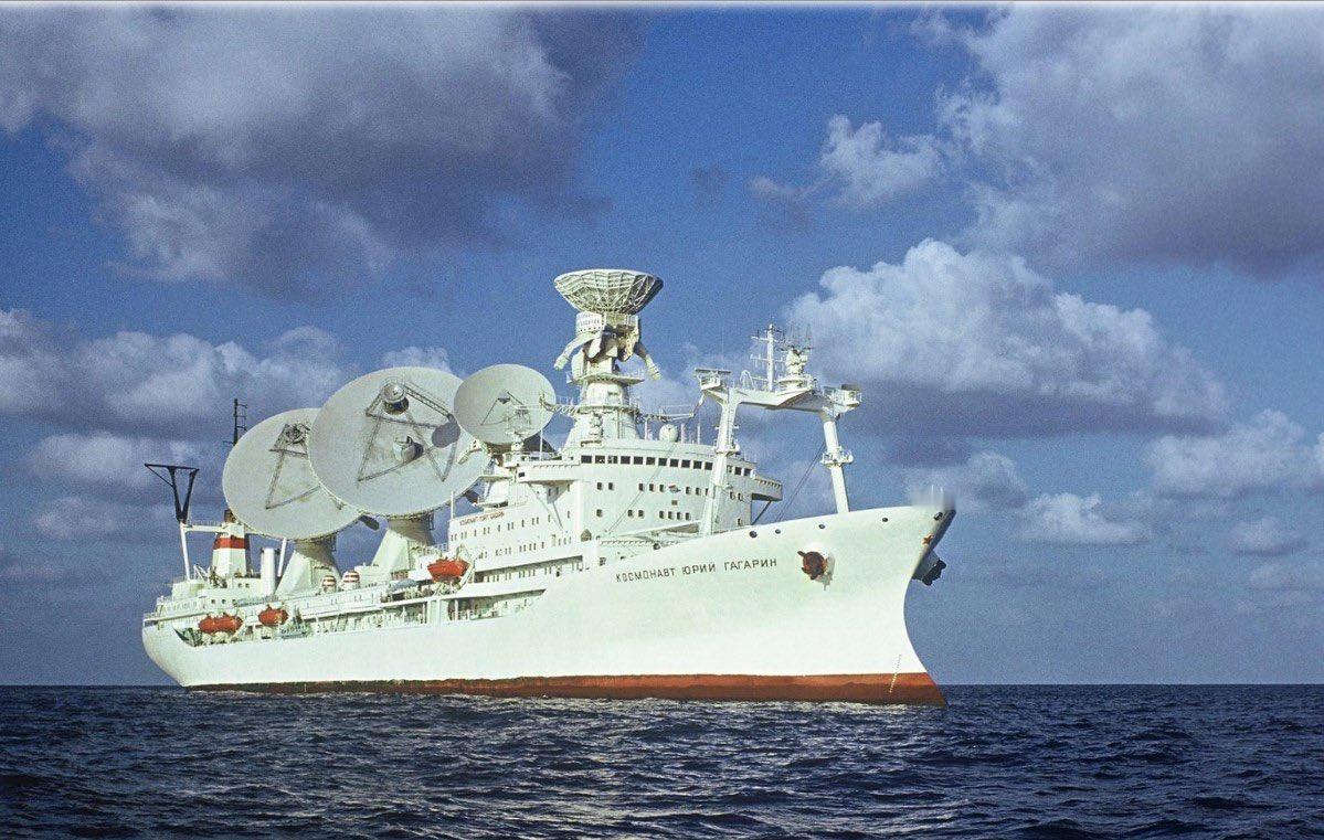 尤里·加加林号«Космона́вт Ю́рий Гага́рин»是一艘苏联的航天测控船,主要任务为侦测与接收卫星通讯讯号。该船以太空人尤里·加加林命名,于1971年12月完工,用于支援苏联太空计划。1986年时,尤里·加加林号为世界上最大的通讯船,并担任通讯船舰队的旗舰。尤里·加加林号自1971年至1991年间,以大西洋为中心执行20次远洋航行任务,负责人工卫星、探测器与载人太空船的通讯中继、飞行控制及观测支援。代表性任务包括:月球20号样本返回任务(1972年2月)、金星8号登陆器资料传输(1972年3月)、阿波罗-联盟测试计划通讯中继(1975年),以及礼炮七号与联盟T-5对接支援任务(1982年)。“加加林”号的动力装置为1台蒸汽轮机,功率1.9万马力,最大航速为 17节,续航力为 2.4万海里。中外舰闻