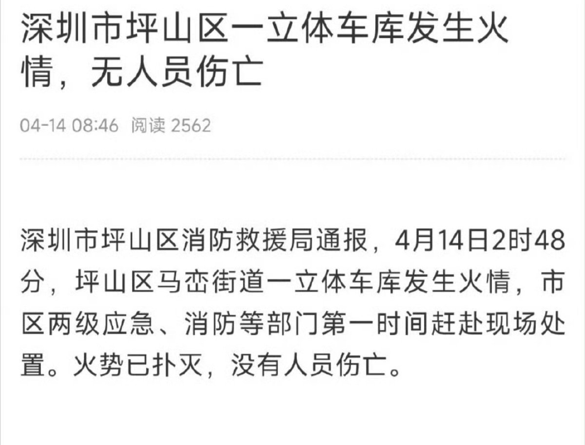立体车库发生火情,已扑灭,无人员伤亡。比亚迪公司起火