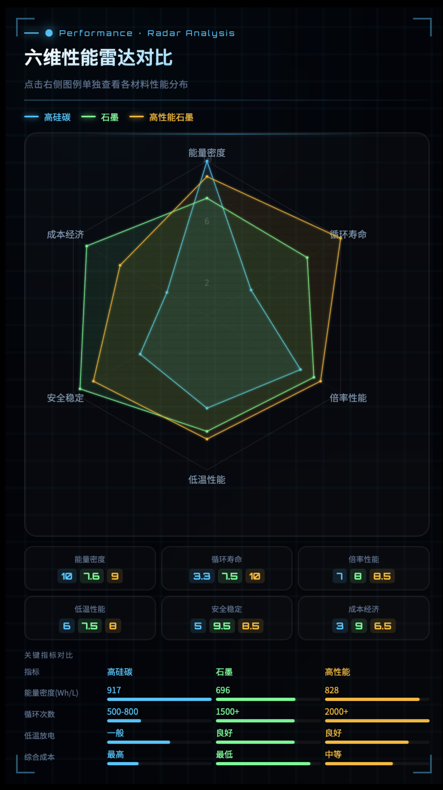 《电芯循环测试报告》测试三款电芯的能量密度:传统石墨电芯696Wh/L/高性能石墨电芯828Wh/L/高硅碳917Wh/L。