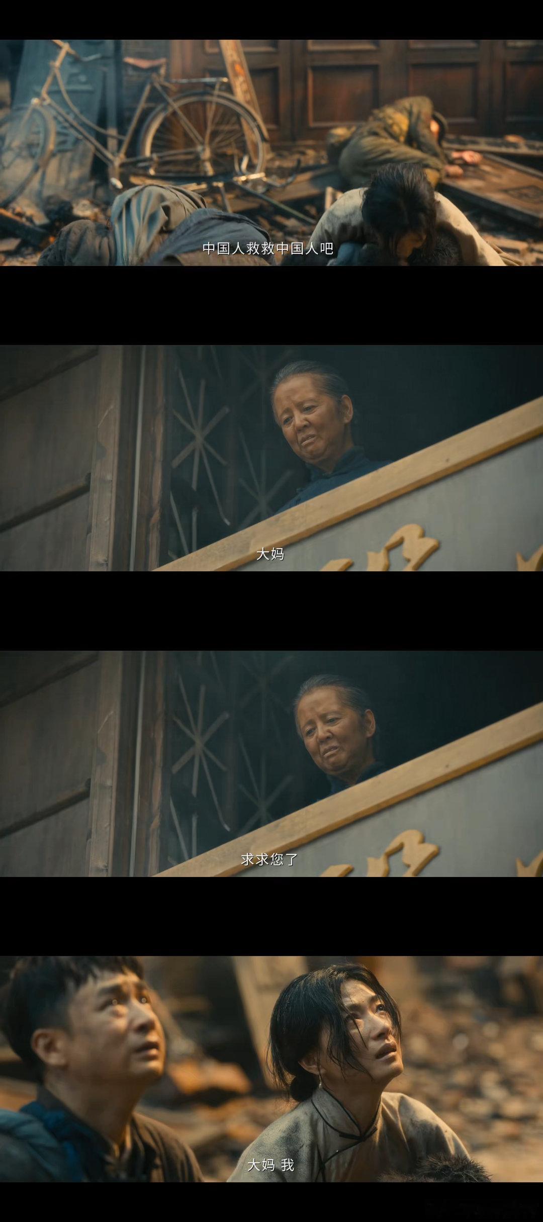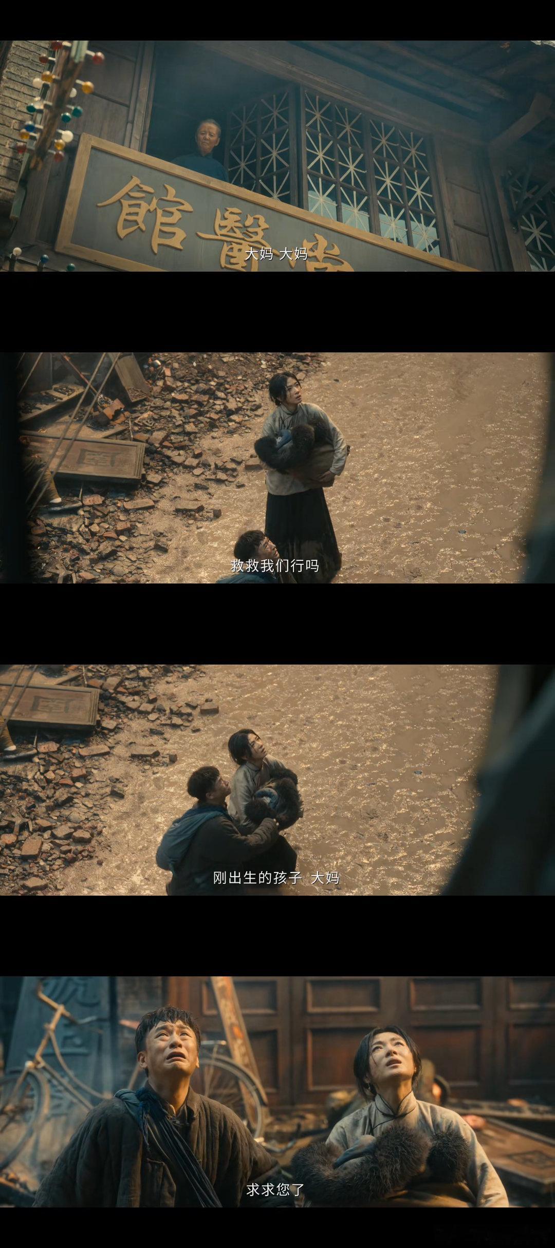 医馆奶奶扔下麻绳的这一刻 济世堂的牌匾下,婆婆颤巍巍地把一节打了结的床单布头从窗户里伸了出来。这一刻,什么话都没说,但什么都说了。放下的绳索是生的希望,满地的绝望中还残留着一点光。导演这段镜头的隐喻太精妙了,伸出援手之人正好是医馆的奶奶,济世堂济世救人,战火中的小人物弧光太戳人了。电视剧八千里路云和月