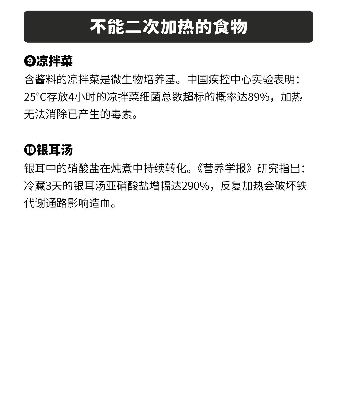 隔夜菜不是指放了一夜的菜 隔夜菜指的是烹饪后放置时间超过8-10小时的菜肴,尤其以下这十种食物,最好不要二次加热,尽量一次吃完!