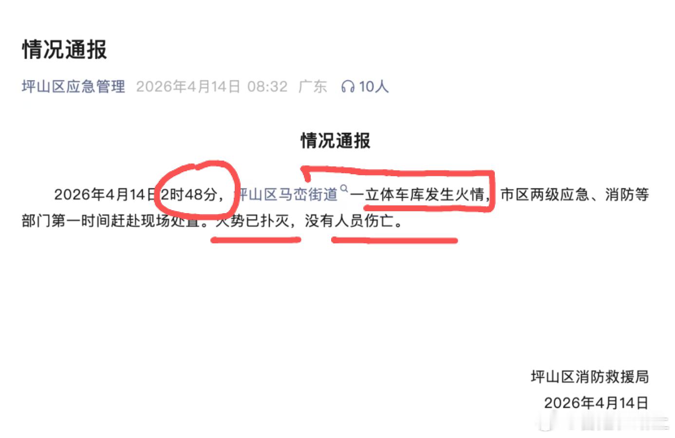 官方通报深圳比亚迪火灾 4月14日,冲上微博热搜第一。据多名深圳市民称,比亚迪深圳坪山工厂出现火情,从市民拍摄画面中浓烟滚滚,火势明显。据坪山区应急管理公众号:2026年4月14日2时48分,坪山区马峦街道一立体车库发生火情,市区两级应急、消防等部门第一时间赶赴现场处置。火势已扑灭,没有人员伤亡。