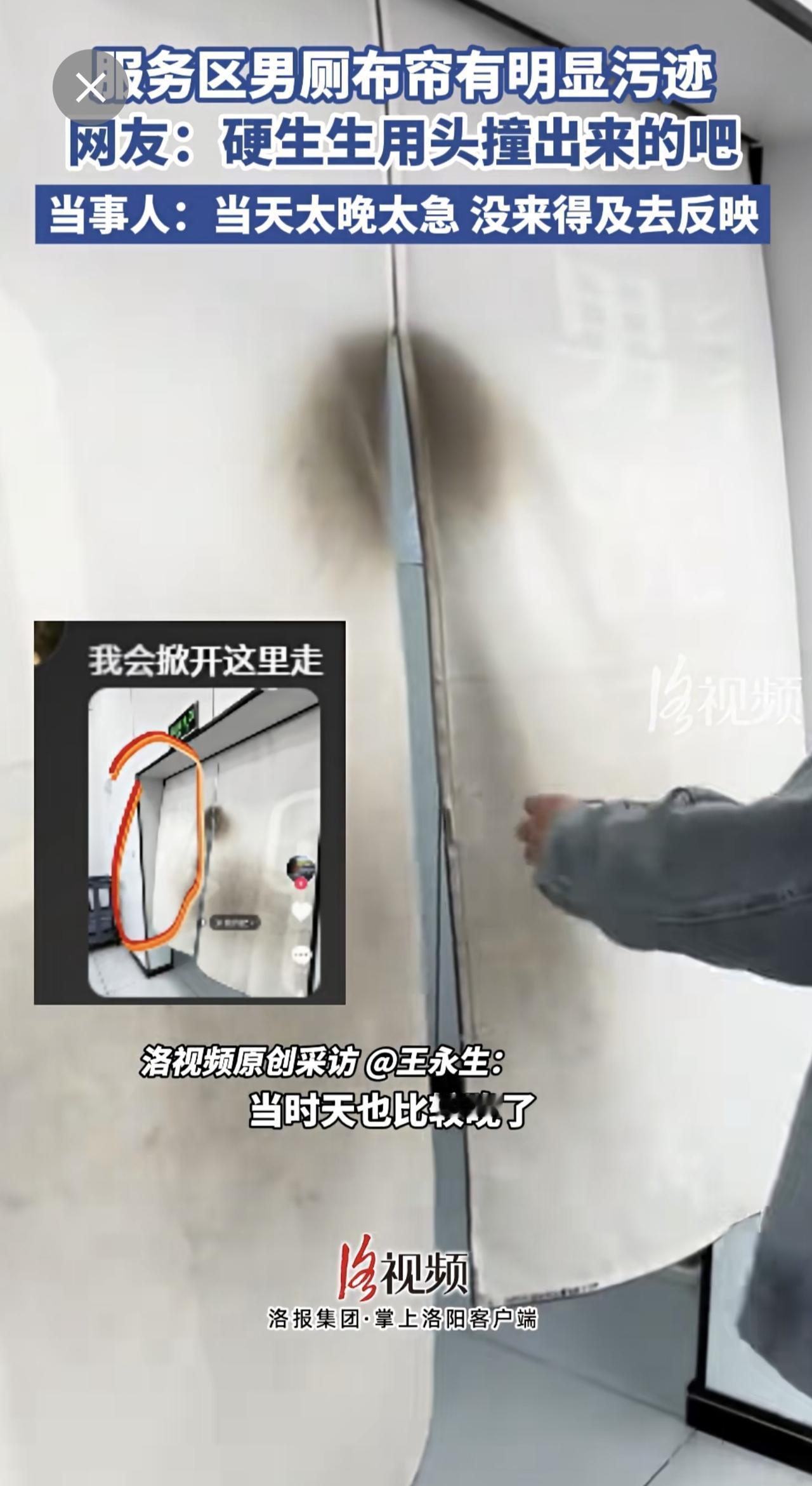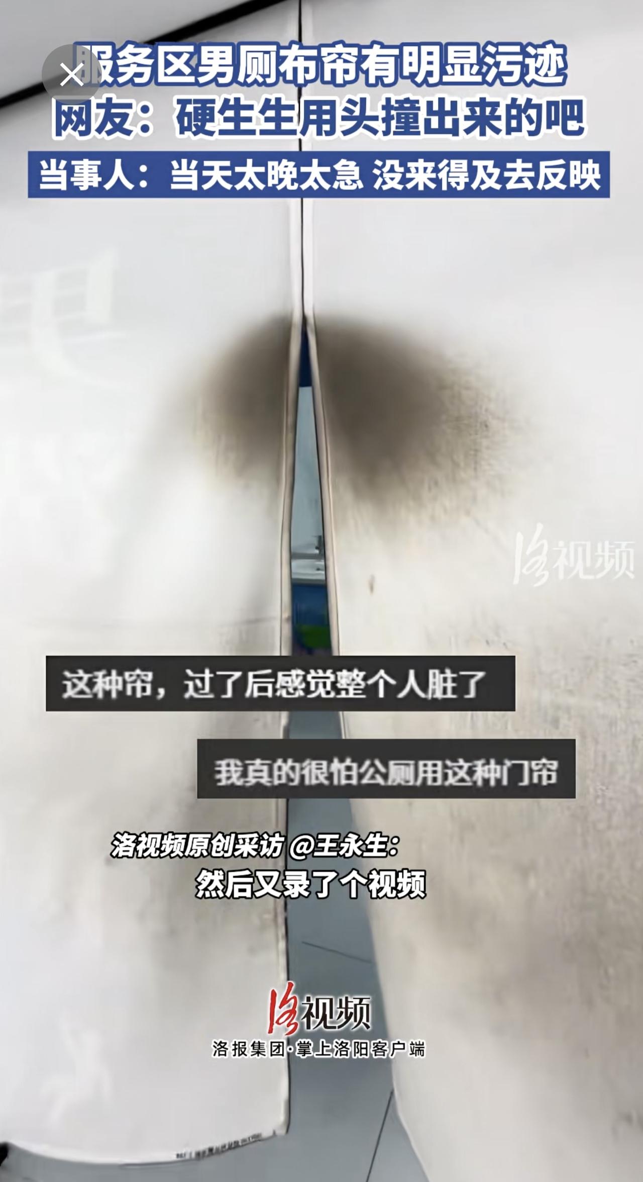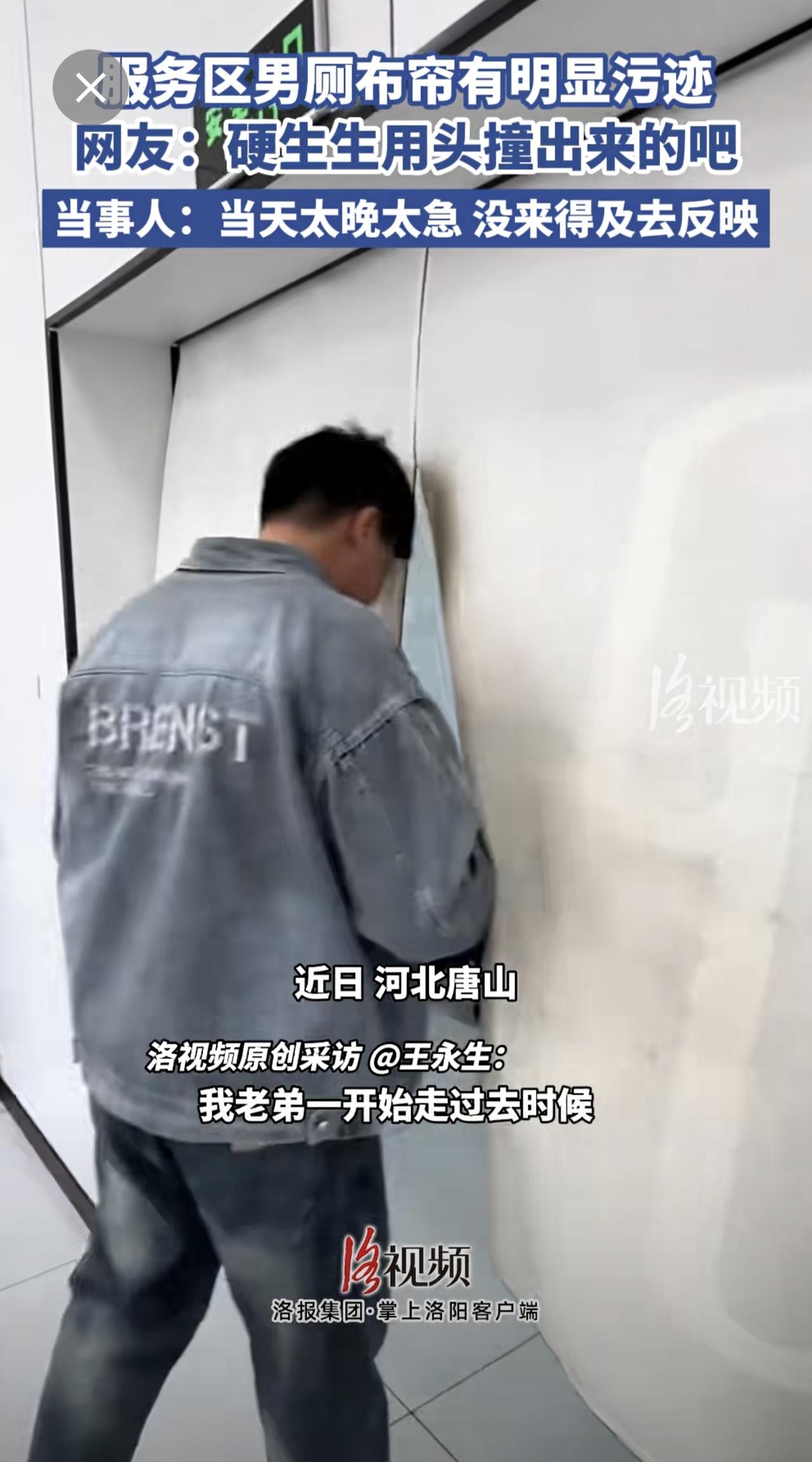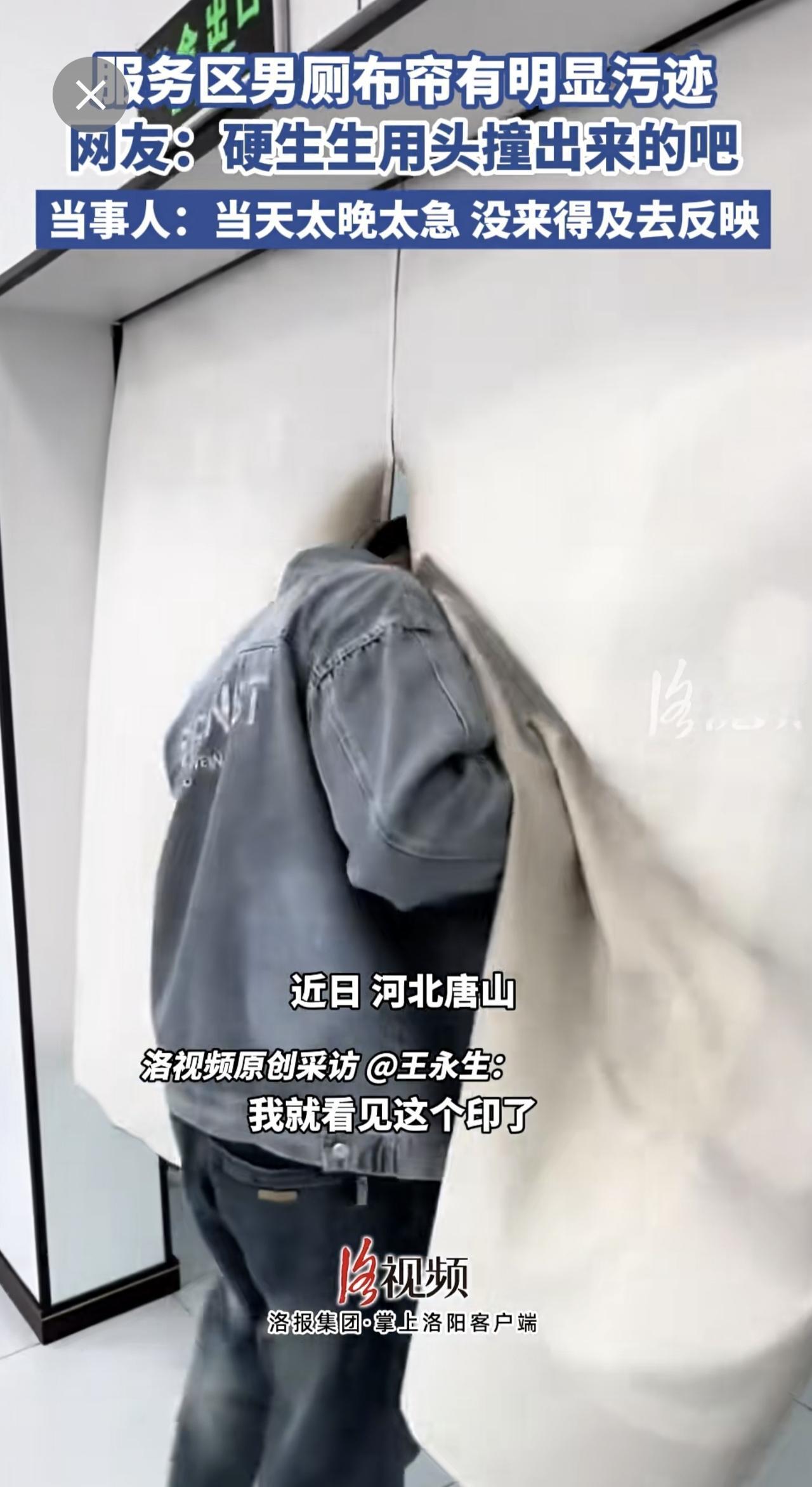 服务区男厕布帘有明显污迹,当事人:当天太晚太急没来得及去反映