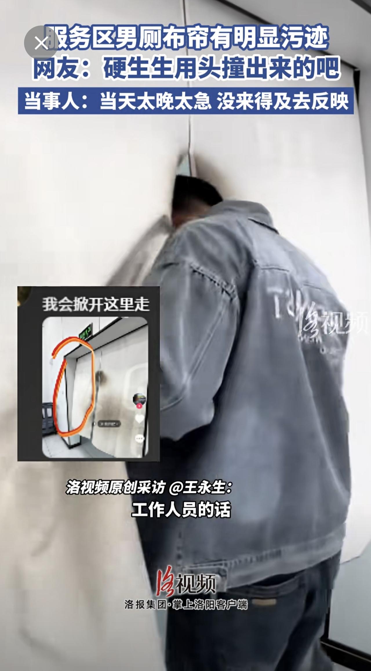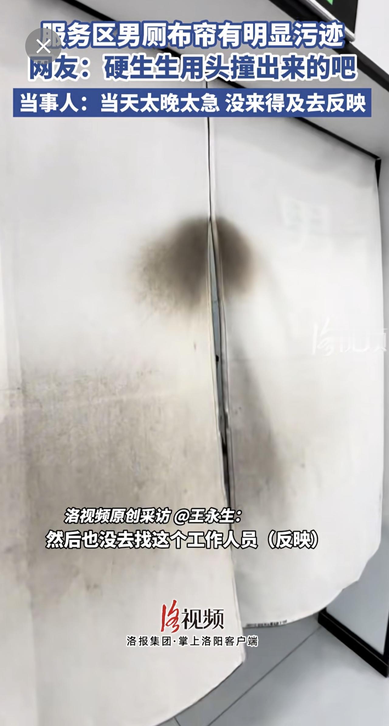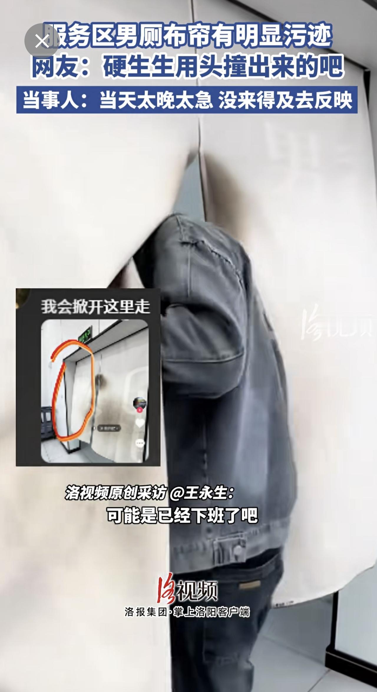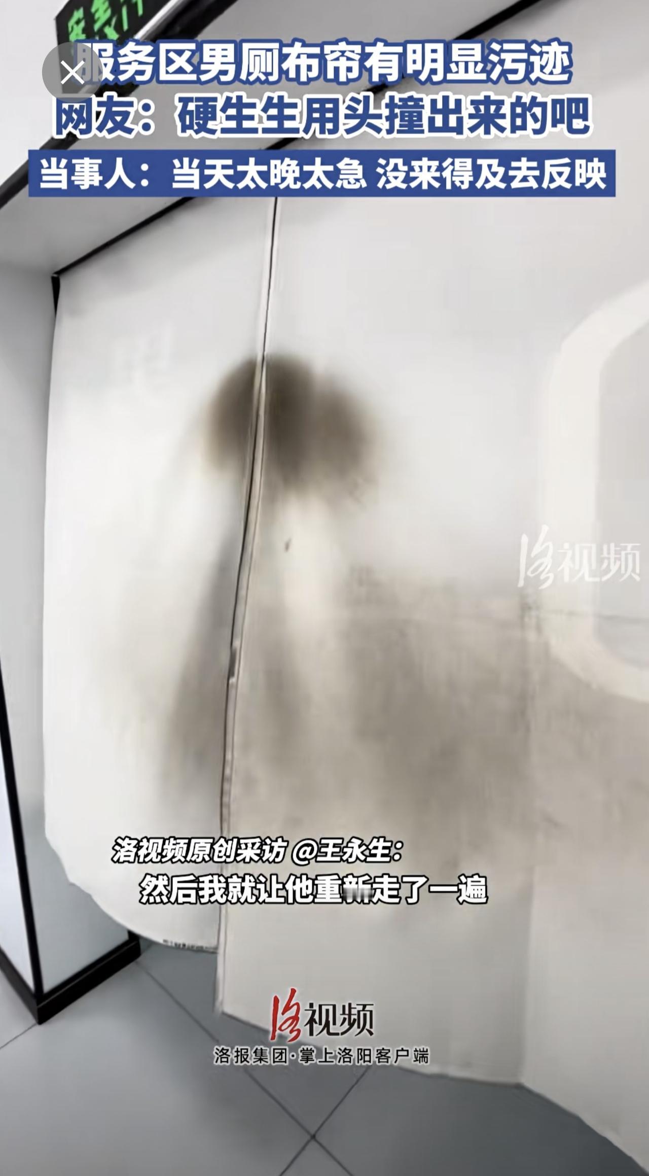 服务区男厕布帘有明显污迹,当事人:当天太晚太急没来得及去反映