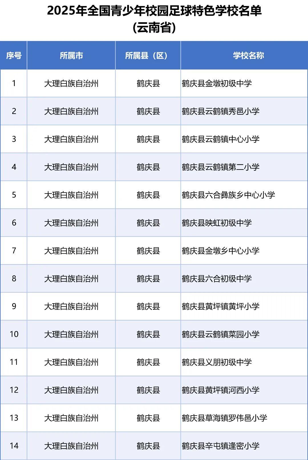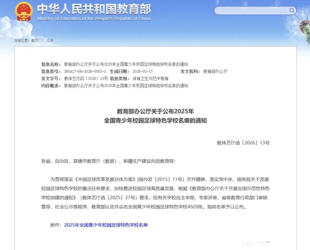 ⚽️教育部公布2025年全国青少年校园足球特色学校名单啦,全国4928所学校入选。这里面云南省有220所,大理州占了33所。 ⚽️能入选的学校可都是经过学校自主申报、专家评审等一系列严格程序的,这是对学校足球发展水平的认可。 ⚽️像红河州有6所学校上榜,潍坊也有21所学校入围。入选后,学校能为学生提供更丰富的足球体验和锻炼机会。校园足球好处多多,不仅能增强学生体质,还能培养集体意识和竞争意识。希望越来越多的学校重视足球,让更多孩子享受足球的快乐。 足球小学 教育部 校园足球