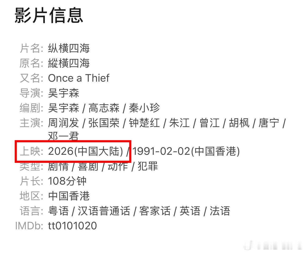 周润发、张国荣、钟楚红主演的《纵横四海》要在内地重映了。